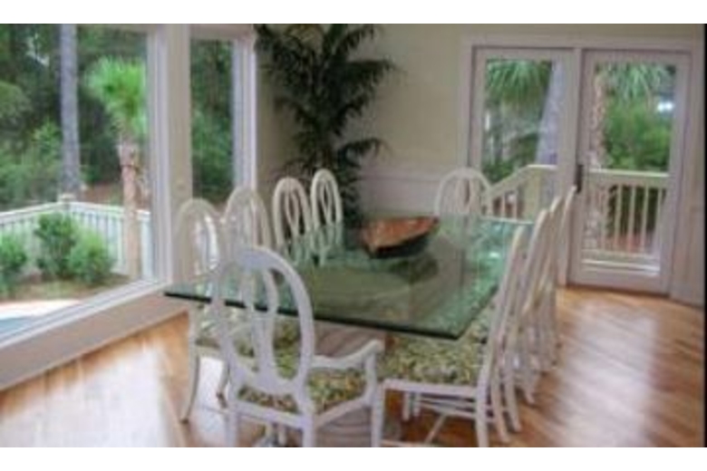 This enormous and beautiful dream vacation home has eight bedrooms and nine bathrooms with the capacity to sleep 22 people. Royal Tern 12 has been totally refurbished and is now one of the best homes for large groups in Sea Pines. All of the rooms are creatively designed and decorated down to the last detail. With three large living areas, your family or group will have plenty of space to gather. The beautiful gourmet kitchen features state of the art appliances, granit countertops, and beautiful windows brightening the entire area. A creative wet bar has a large countertop and plenty of seating. Technology abounds in this home with plasma and flat screen televisions. Downstairs, you will be able to open up the doors to the den and expand your living space to the amazing pool area. This home is truly a paradise.Surrounding Description