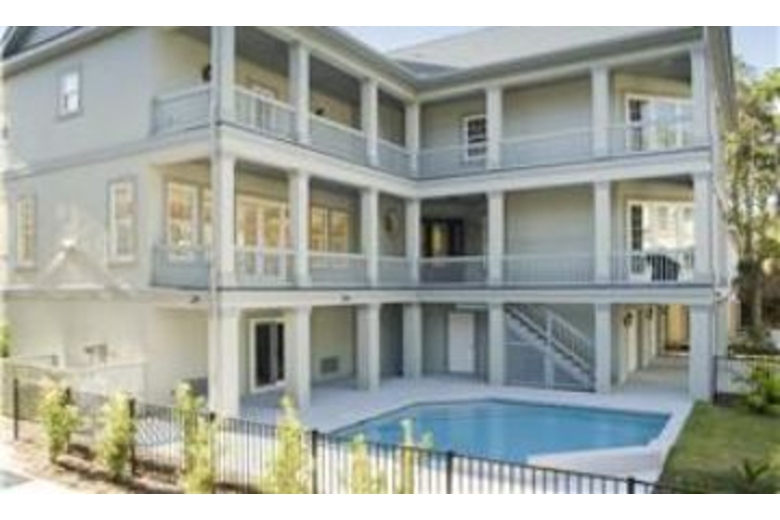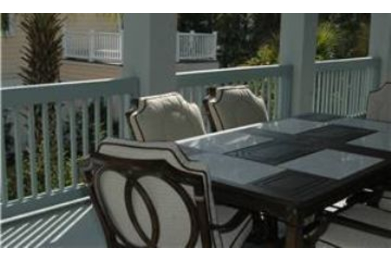 Decks and more decks characterize this new beach home just three rows from the ocean. The two master suites offer the ultimate in pampering with private baths and Jacuzzi tubs to soak in. An elevator gives easy access to the three floors and ground level pool. The spacious kitchen is fully equipped and even has a large island. The living room has comfortable furnishings as well as a fireplace with a plasma television above it.Surrounding Description