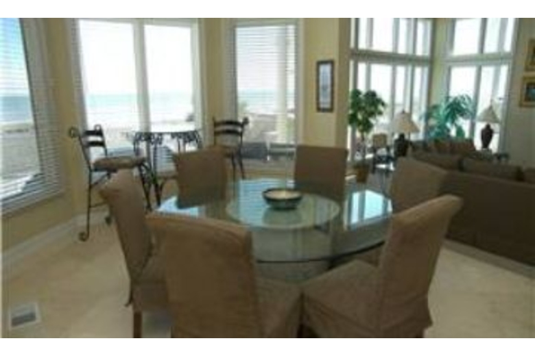 This four story, five bedroom, six bathroom house offers amazing views of the beach. There is a king bed in the master bedroom, a queen bed in three of the bedrooms, and one bedroom with two full size beds. There is also a jacuzzi tub and private balcony in the master bedroom. The living area has beautiful furnishings, fireplace, and a 15 foot elevated ceiling. The fully equipped kitchen offers plenty of space, granite countertops, and seating for three at the breakfast bar. The dining area has a glass table with seating for six and an ocean view. This home also comes with digital cable TV, high speed internet, digital music, board games, and two youth bicycles.Surrounding Description