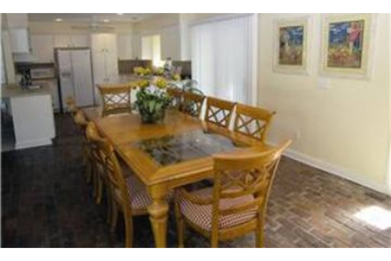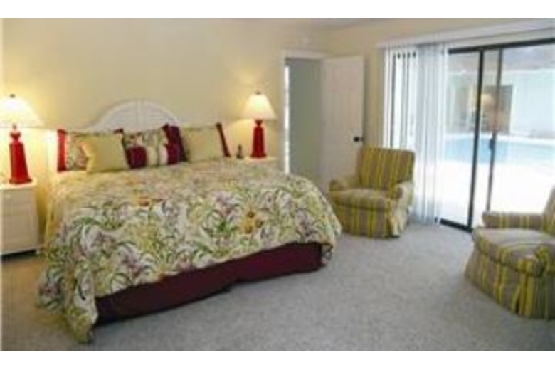 This five bedroom, four bath home sleeps twelve people. The kitchen is fully equipped for all of your cooking needs and has seating for four at the breakfast bar and seating for ten at the dining table. The bedding consists of three king beds, one queen bed, two twin beds, and a sleeper sofa. Each bedroom has a flat screen TV and access to the pool and courtyard. The living area is spacious and has a 42 inch plasma screen TV and a fireplace. This home also has wireless internet so you can stay in touch while on vacation.Surrounding Description