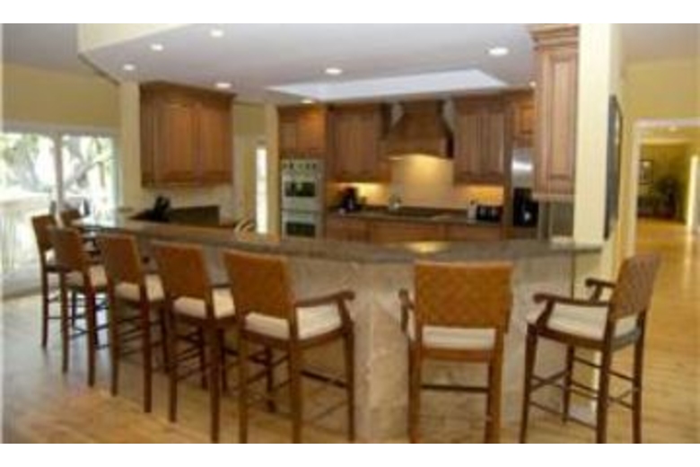 This newly renovated, one of a kind home was designed by renowned island architect Kermit Huggins. With 6 spacious bedrooms this property is perfect for family reunions or company retreats. Enjoy retiring to your room at the end of the day private bathrooms and large televisions. Choose from 2 or 3 different living areas ro relax and gather with friends and family. Big screen televisions are featured in these rooms along with comfortable seating and gas fireplaces. The immaculate kitchen is spacious enough to prepare meals for large groups of people. There are stainless appliances, granite counter tops and hardwood floors. Gather at the breakfast bar or in the formal dining room to enjoy your meals while on vacation. The landspacing of this property is gorgeous with 3.4 acres of mature oaks, magnolias and Spanish moss. The restoration encompasses everything from the interior to the meticulously manicured grounds, huge 40,000 gallon heated swimming pool, and 5 outside decks.Surrounding Description