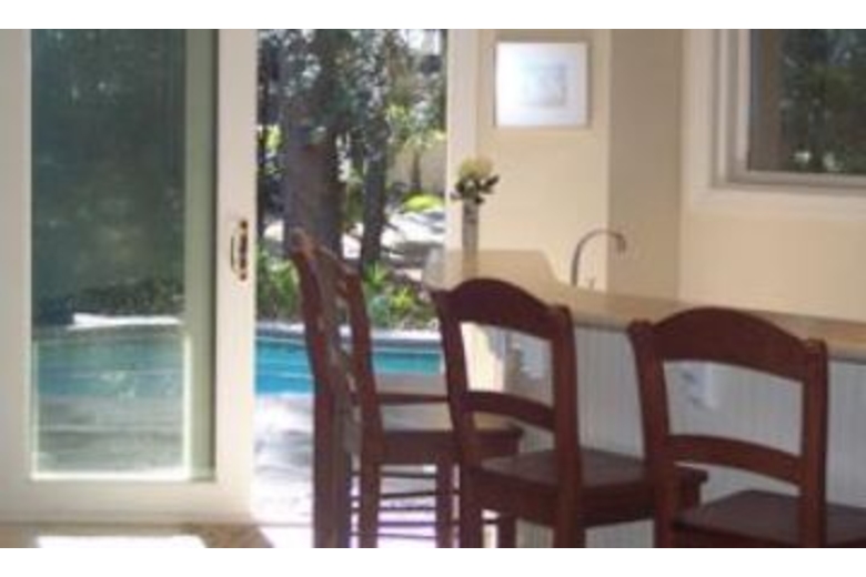 The home is new and has been beautifully decorated for your enjoyment. There are 5 bedrooms and 6 baths, accommodating 12 guests. Each bedroom is unique and offers it's own personality. There is 2 kings, 1 queen, 1 full and 4 twin size beds. The gourmet kitchen, spacious great room and poolside room with a wet bar, help set the perfect atmosphere for your vacation get-togethers. The ocean view home has wonderful features including, 2 fireplaces, formal dining room and breakfast nook, jetted bathtub, bbq grill and court yard views.Surrounding Description