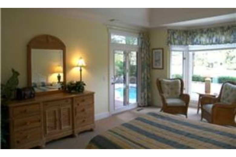 This large luxurious home has tasteful decor throughout and comfortable accommodations. It features 5 bedrooms and 4 bathrooms with sleeping accommodations for up to 12 people. There are two master bedrooms with king size beds and one has his and her bathrooms. The third bedroom has two double beds and the fourth has a queen size bed. There is also a 5th bedroom with a daybed/trundle to accommodate the extra guests. Spend your evenings out on the screened in patio enjoying a nice barbecue. There is also a fully equipped kitchen to make your meal preparation easy.Surrounding Description