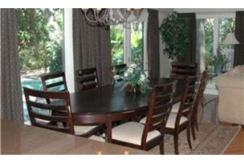 This spacious home features hardwood floors, tasteful decor and beautiful furnishings. With 5 bedrooms and 4 bathrooms there will be plenty of room for a group of 12 people to relax and enjoy a nice beach vacation. The bedding includes 2 king size beds, 4 twins and a queen size bed. The family room also becomes a 6th bedroom in the evening with a sofa bed. The large beautiful kitchen will make it easy to spend some time preparing meals; however there is also a grill if you prefer to do your cooking outside. There are 7 televisions throughout the home, so there won't be any worries about not getting to watch your favorite shows. Additionally, there are 4 VCR's and 4 DVD players if you prefer to stick on a movie.Surrounding Description