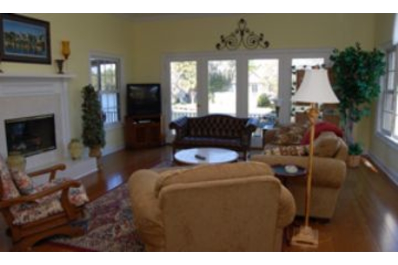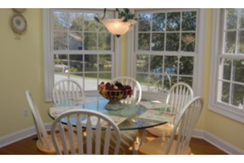 The living room features hardwood floors, fireplace, leather loveseat, sofa, oversize chair, TV, DVD and door to the patio to enjoy views of the lagoon. There is a seating area off the living room with two loveseats, fireplace and door to screened in porch. There is a beautiful dining room with china cabinet, hardwood floors and table with seating for 6. The den has two desks, a sleeper sofa and access to the bathroom with a tub/shower combo. The open kitchen has updated appliances and cabinets, hardwood floors. There is also a breakfast nook with seating for 6. The first bedroom has a king bed, TV, DVD and a patio with lagoon views. There is a large private bath with walk in closet, double sink, Jacuzzi tub, separate shower and TV. The second bedroom has a king bed. The third bedroom has 2 twins and a door to a lagoon front separate balcony that it shares with bedroom 4. The fourth bedroom has a queen bed and walk in closet. The fifth bedroom has a trundle bed, king bed. Bedrooms 4 and 5 share a tub/shower combo. There is a screened in porch which leads out to the deck. Enjoy spectacular views of wildlife from the deckSurrounding Description