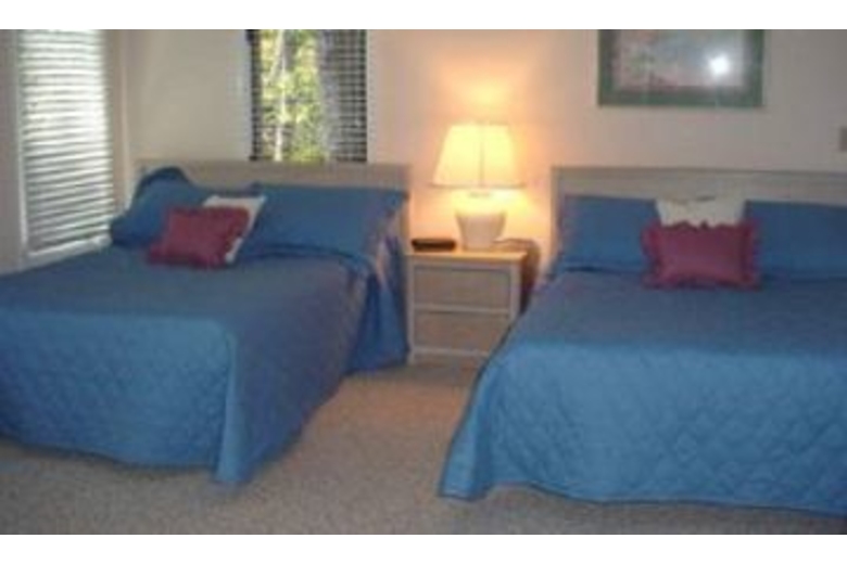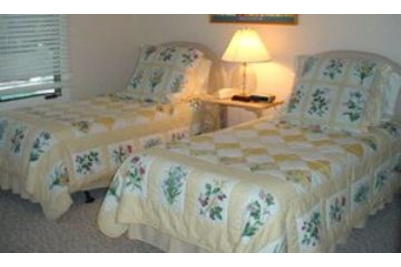 A den on the first level offers additional lounging space and a TV. You will also find three bedrooms on the first level, each with a private bath. They feature two double beds. The next bedroom has two twin beds, TV, VCR, and DVD player. Next is another room with two twins. The second level bedroom has two queen beds, a TV,VCR and DVD player plus a private bath with a jetted tub and separate shower, and a walk-in closet. Two master suites are located on the upper floor. They both have a king bed and private bath with a TV, VCR, and DVD player. The kitchen, living, and dining areas are very spacious. The kitchen comes fully equipped for all of your cooking needs and opens to a dining area with table for ten. The upstairs living area has comfortable furnishings, a TV, VCR, and DVD player. This home has a lovely pool, spa, and grill for your added enjoyment.Surrounding Description