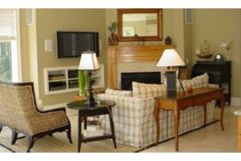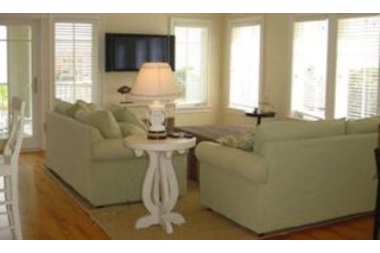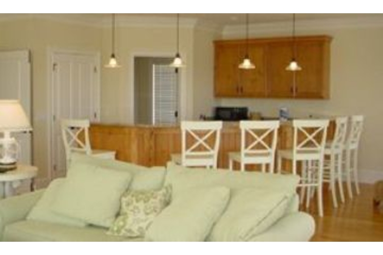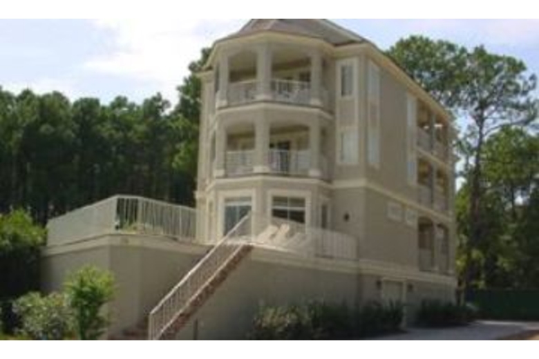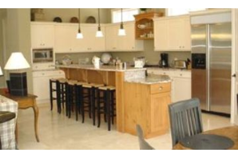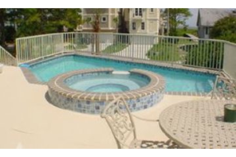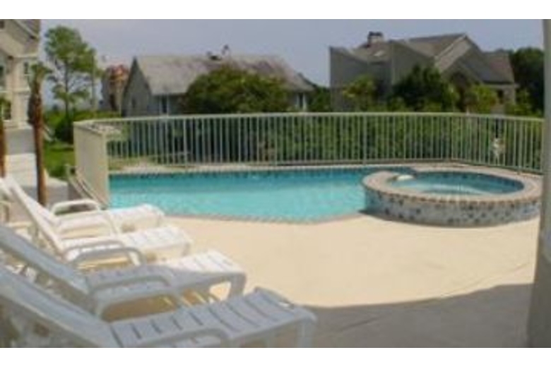 The first floor has an open family room, large custom kitchen with granite counter tops, large breakfast bar, stainless steel appliances, Sub-Zero refrigerator, and a wonderful eating area with a 74' round table to seat ten. Just outside the eating area windows is the sun deck, pool, hot tub and a gas grill. The first floor living area includes a gas fireplace and plasma TV. Also situated on the first floor is a master bedroom and bath, the laundry room and a powder room. The second floor has a master bedroom bath with a large covered balcony overlooking the pool below. The third floor has a large club room with hardwood floors, and a large bar area, with fridge, microwave, dishwasher, and ice machine. The club room has eight bar stools, a large living area plasma TV. This room also has two queen size sleeper sofas and a half bath. Down the hall is the large kids room. Truly a kids hang out! It has two full size beds, a trundle bed, and a private bath.Surrounding Description