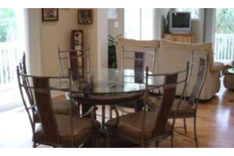 The main level has a half bath, kitchen, dining area, and three separate living areas. The living room has a sleeper sofa, fireplace, and leads to the kitchen/dining area with seating for up to fourteen. Off the dining room is a great sunroom with TV that overlooks the pool area. A cozy family room off the kitchen has a TV/VCR/DVD, and a sliding glass door to the back deck. Also on this level is a bedroom with a king bed, TV/VCR/DVD, and a private bath with jetted tub and separate shower. Five more bedrooms are found on the second floor. The first has a king, TV/VCR/DVD, and private bath with jetted tub and separate shower. The next has a queen bed, TV and private bath. Next is a bedroom with two twins, a TV/VCR, and private bath. The next bedroom has a queen bed, TV/VCR, and shares a bath with the sixth and final bedroom with two twin beds. Outdoors you will find a gas grill and large pool.Surrounding Description