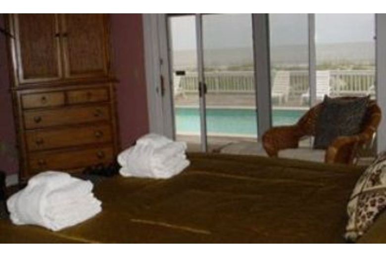 In the entry you will find a large great room complete with vaulted ceilings and hardwood floors. The living area features a large screen TV, VCR, and DVD with surround sound system. This room has wall-to-wall windows with fabulous views of the gorgeous Atlantic. The kitchen is fully equipped with an eat-in bar and a breakfast table, both overlooking the ocean. Just off the kitchen is a dining area for eight. The master suite has a king bed, TV, walk-in closet, a private bath with a spa tub and separate shower, as well as a great ocean view. Upstairs, there are four more bedrooms. The first has a king bed, TV, private bath, and access to a private oceanfront balcony. The second has two double beds, TV, and a private bath. The other two bedrooms share a bath and feature a king and queen bed and TV in each respectively. Outside you will find a large pool area complete with gas grill and a fantastic ocean view. The home is equipped with free high-speed wireless internet access for you convenience.Surrounding Description