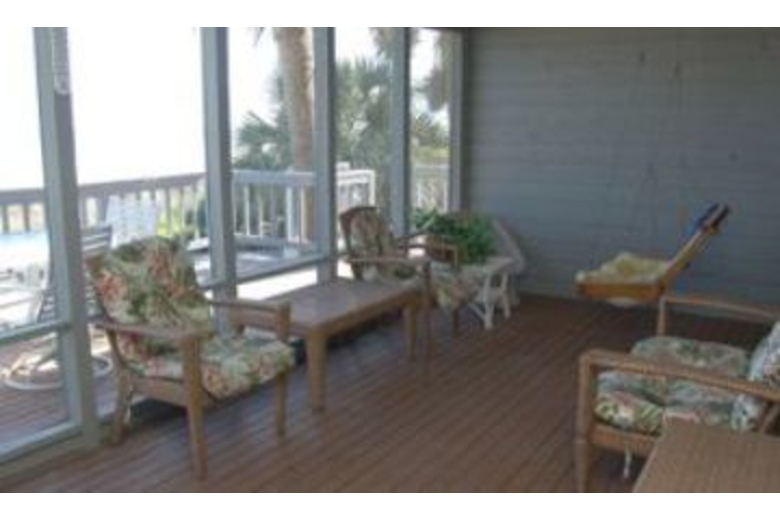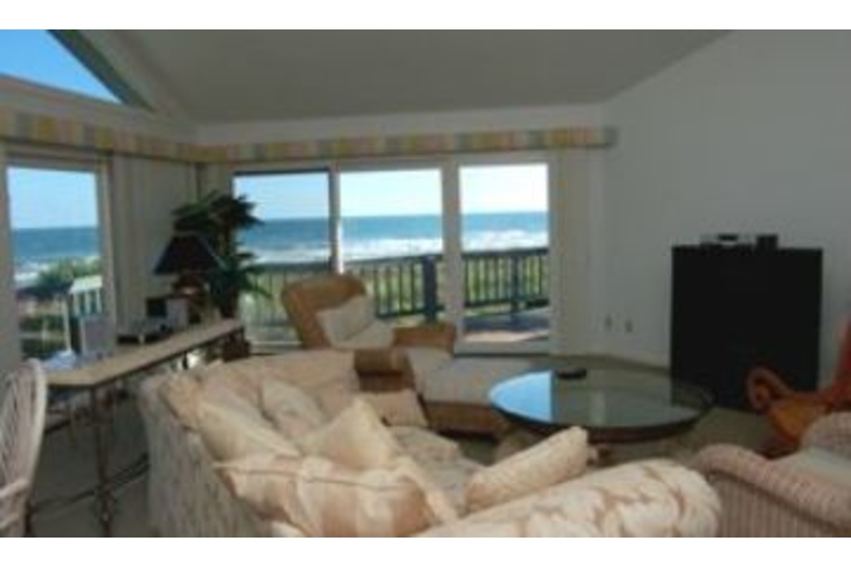 There are two distinct sides to the house, each with a separate entrance and amenities. One side features three bedrooms, a living room and open kitchen overlooking the dining room with spectacular views of the ocean. The first side of the house has a large living room with access to the extensive deck leading to the private pool and jacuzzi. The oceanfront screened in porch is accessed through French doors off the dining room. The master bedroom is located on the second floor and has a king bed with full bath equipped with a jacuzzi tub and a private lanai providing fabulous views of the ocean. The other side features another sitting area, a kitchen area, an open loft and two bedrooms. There is also access to the oceanfront deck and a smaller kitchen. There are two bedrooms on this side of the house. One bedroom has a queen bed and access to a hall bathroom with tub/shower combo. The other bedroom is located on the second level and has two full beds, a private bath and a loft that overlooks the sitting area.Surrounding Description