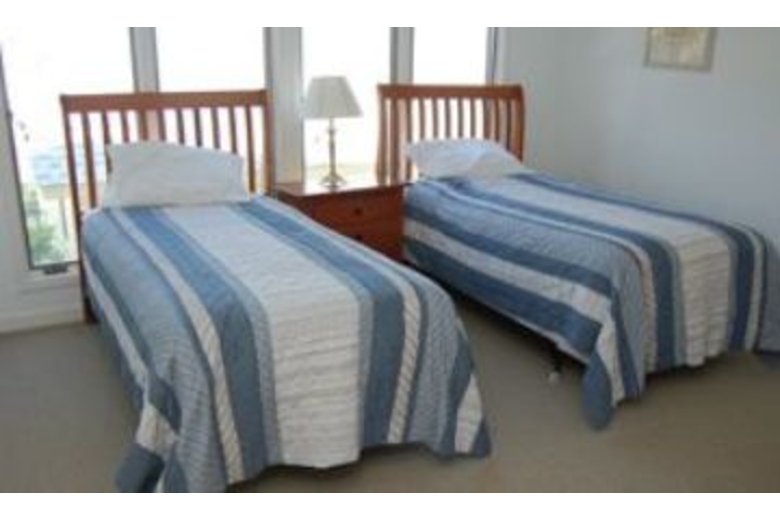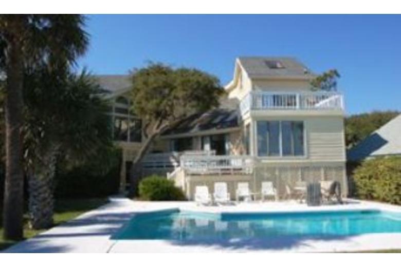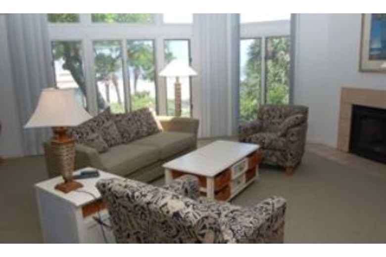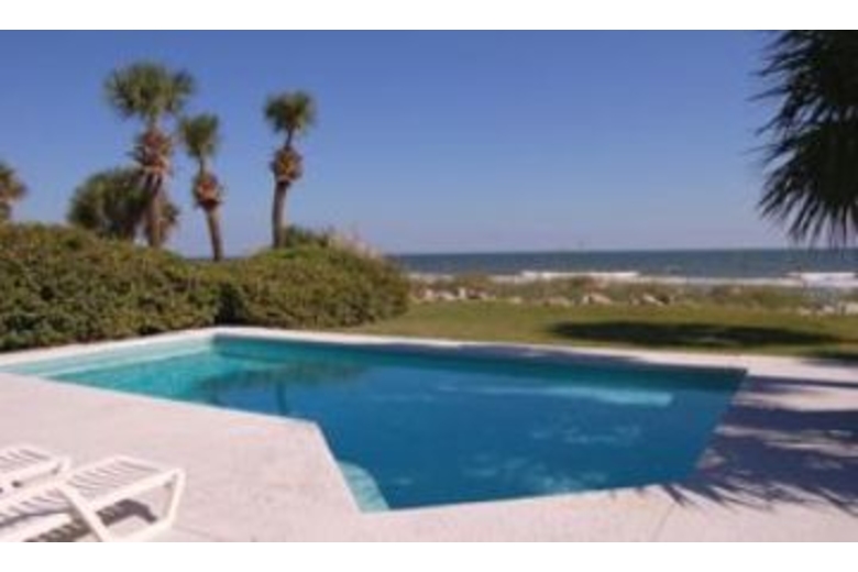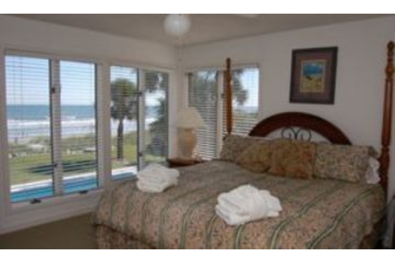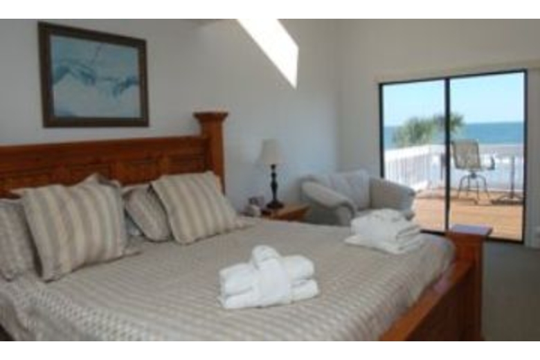 The first floor of the house has a spacious living area with TV, VCR and DVD player. There is also a stereo with CD and a bar area with sink. A sliding glass door from the living room leads out to a beautiful oceanfront deck. Most of the bedrooms have TVs and private bathrooms. There is a delightful den that has two leather sofas with matching chair, stereo and a TV and VCR. There is also a cozy fireplace. The dining room is off the den and kitchen and has seating for six. The fully equipped kitchen has bar seating for six, corian countertops, hardwood floors and white cabinetry. You will find the fourth master bedroom has a king bed, two matching chairs and armoire with TV. There is an unbelievable private balcony right on the ocean with a cocktail table and chairs plus additional seating for two. The pool area is perfect for lounging and grilling out. You will find plenty of lounge chairs for sun bathing and table space for eating and entertaining. The pool is right off the beach, and the beach path is conveniently located to the right of the pool.Surrounding Description