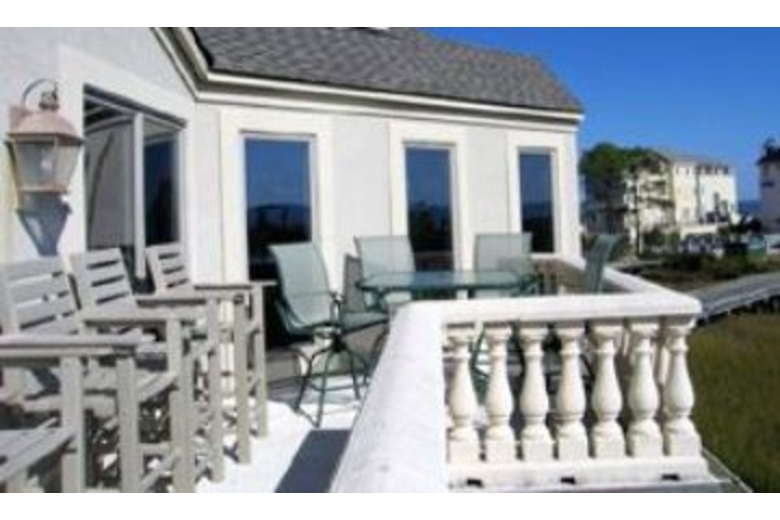 Spacious and tranquil just begins to describe this unique vacation house. With incredible views of the ocean and tidal marsh, the beach is only a short one-minute walk on a wooden bridge. The tidal marsh is beautiful and creates a peaceful buffer zone from beach noises and other homes.