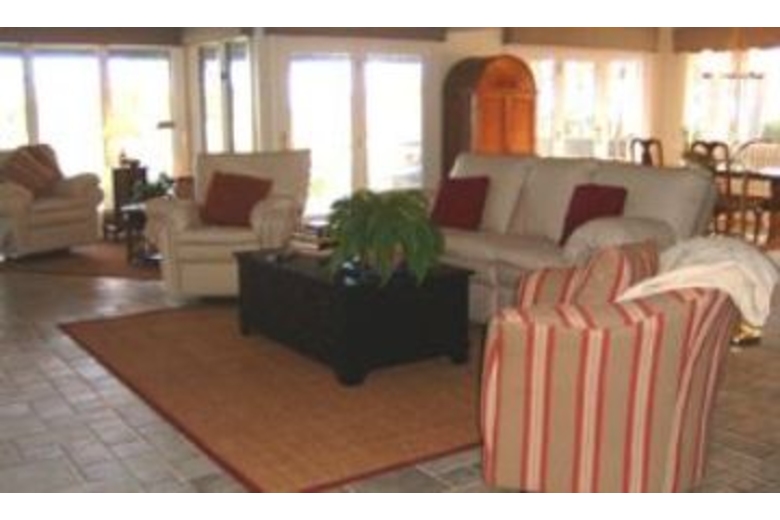 The entire first floor features lovely and substantial white crown moldings. The living room has a large flat TV, fireplace, DVD player, wet bar, wine refrigerator, and surround sound. Multiple French doors from living room lead to the deck overlooking the pool, golf course, lagoon, and ocean. The master suite is just off the living room and has a huge walk-in closet, a very large private bath with a jetted tub and separate shower, and a four poster king bed. This room enjoys spectacular views of lagoon, golf course, pool, and the ocean beyond. The second floor has a cozy top-of-the-stairs library with slanted ceilings. Outdoors you will find a large pool, charcoal grill, and room for the entire family to soak up those bright Hilton Head rays just steps from the beach.Surrounding Description