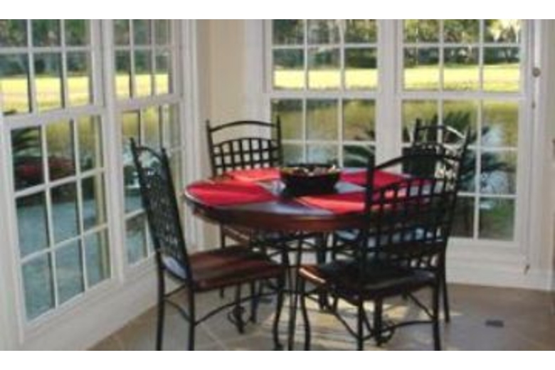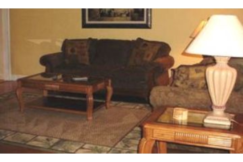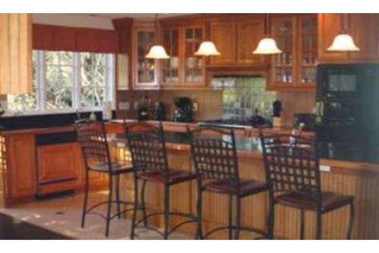 Off of the foyer is a small sitting area with a decorative fireplace. This room also leads to the dining room, which seats eight and has a fantastic view of a lagoon and the golf course. The large, fully equipped kitchen has granite counters, custom built cabinetry, a bar that seats four, and a breakfast table for four. Off of the kitchen is a wet bar area, which has a sink, refrigerator, and table for two. The living room has a large flat screen TV, DVD player, and surround sound. The master bedroom has a king bed, TV, DVD, walk in closet, private balcony, and a private bathroom with a separate shower and Jacuzzi tub. Several of the bedrooms have private baths, and they also have TVs.Surrounding Description