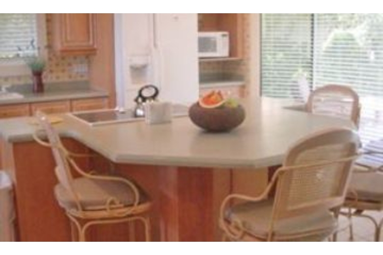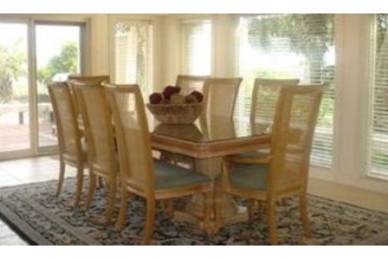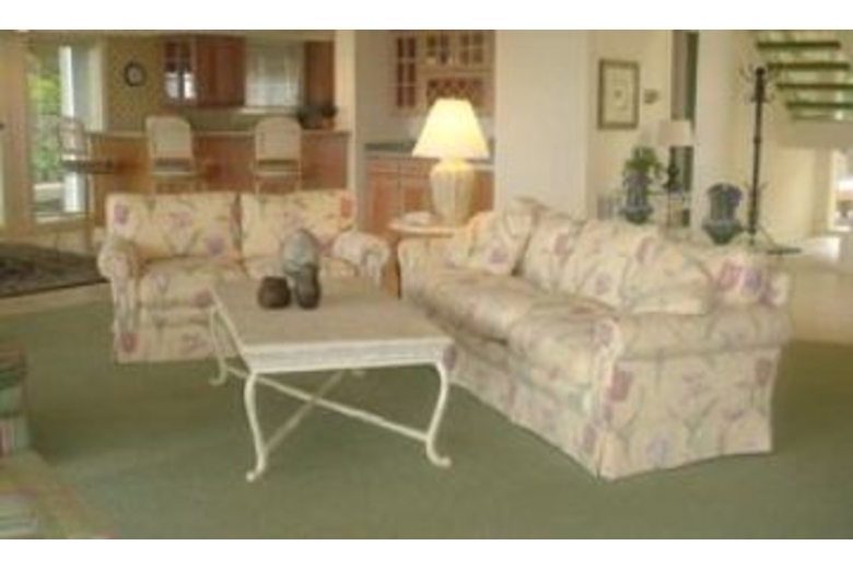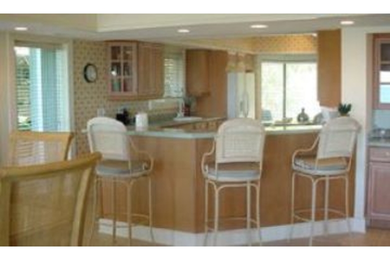 Enter to a sunny and open living room complete with two sofas, two club chairs, large TV, VCR, and stereo with CD player. Next to the living room is a dining area for eight. Sliding glass doors lead from the living and dining areas to a relaxing ocean-side deck with two tables that seat 4 and a lounge chair for sunning. The kitchen is located just off the dining room and has great views of the pool area and the ocean. Half bathroom off kitchen. There is plenty of seating with a bar for three and a breakfast table that seats four. The master suite is located dowstairs off the living area and features a king-swing bed, TV, VCR, private bath with garden tub and separate shower, and a slider to the oceanfront deck. A second half bathroom is located in this hallway. Three more bedrooms are located upstairs, each with exceptional ocean views. The first has two queen beds, a TV, VCR, and shares a bath with the next bedroom with king-swing bed and TV/VCR. Bedroom four has two queen beds, private bathroom and a TV, and VCR. A great attribute of this home is the large rectangular pool and spacious lounging area with plenty of deck and porch space in the front of the home. The porch wraps from the pool area in the front to the beach deck in the back - perfect for grilling out and entertaining.Surrounding Description