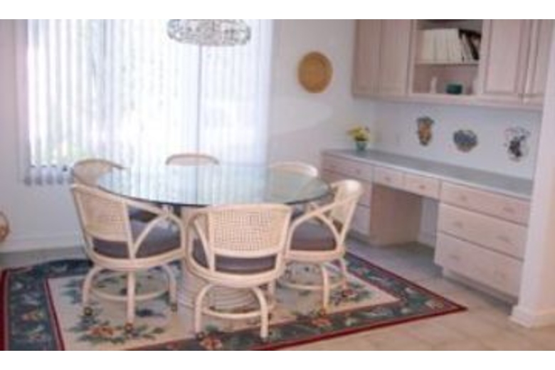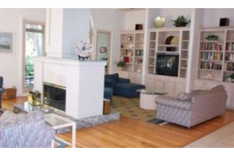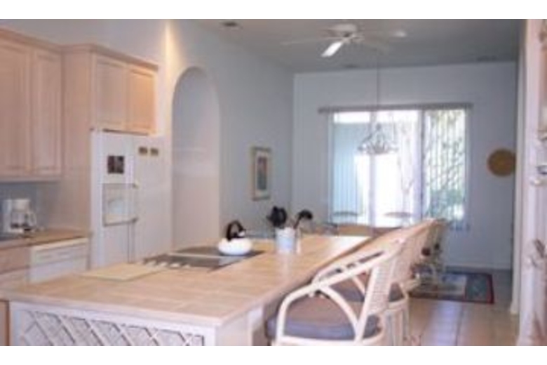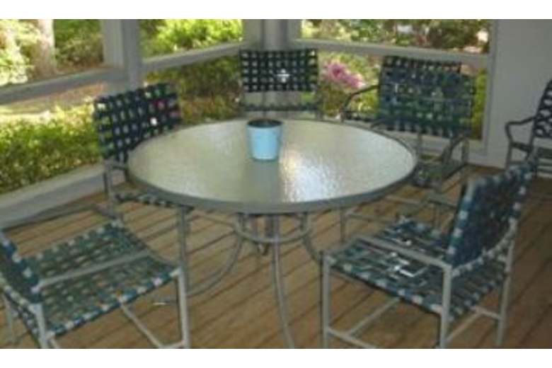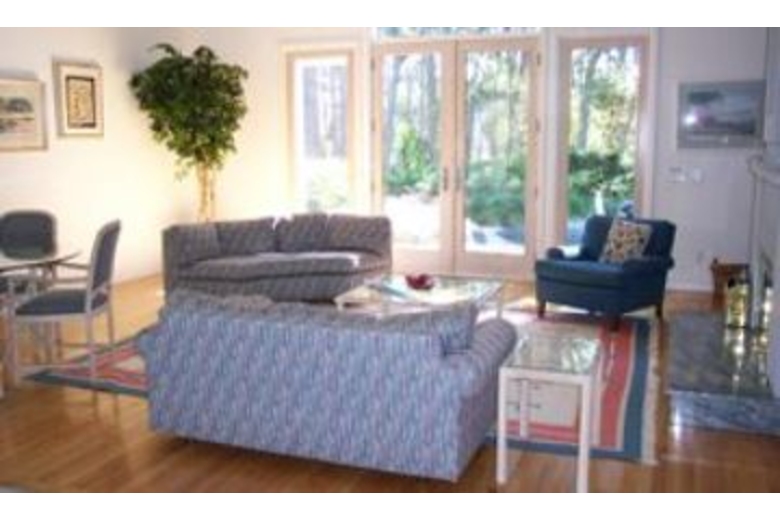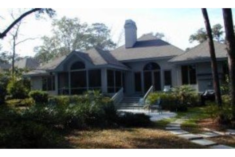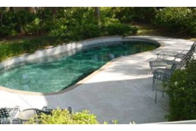 The entry is open to the living room and has two sofas, a chair, and a table that seats four. This room leads to the deck and roomy pool area. The living room is separated from the family room by a decorative fireplace. In the family room you will find a sleeper sofa, two large chairs with ottomans, a TV/VCR/DVD. Double doors lead to the screened porch with a large table and 8 chairs. The kitchen is fully equipped and has a table for six. The dining room has a table for six also. In the master bedroom is a king bed, armoire with TV and VCR, and two chairs facing a decorative fireplace. This room has a private bath with a jacuzzi tub and separate shower. The second bedroom has two double beds and a private bath with a tub/shower combo. A third bedroom has two twins and a private bath. Twelve steps up take you to a bedroom with a double bed, sleeper sofa, chair, TV, VCR, and private bath. This Hilton Head Island home has an outstanding pool area with lots of room to lounge around and swim. There is a charcoal grill on the deck.Surrounding Description