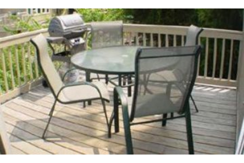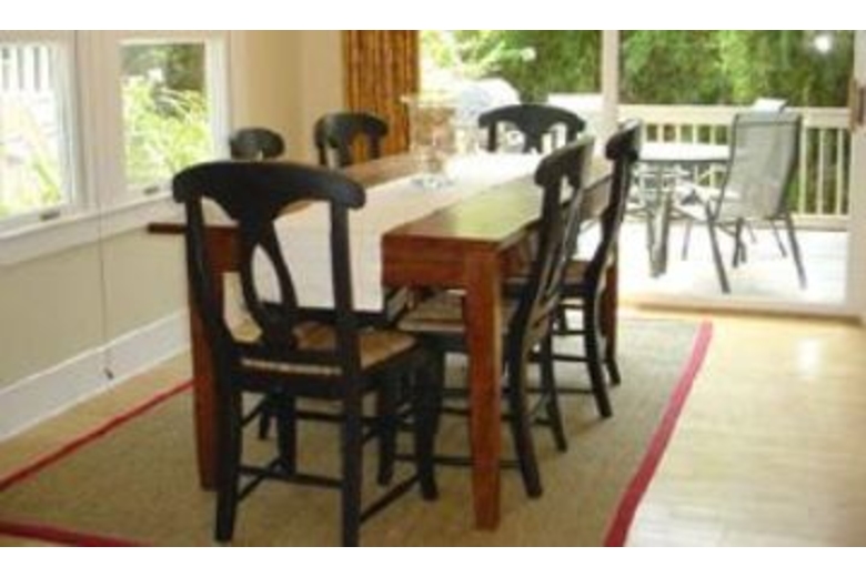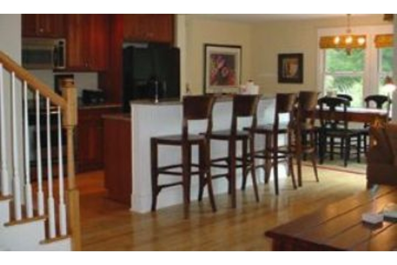Stairs from this garage area and private suite lead to the second floor where you will find a kitchen, dining and living area, and 2 more bedrooms. The kitchen features granite counters and an eat-in bar that seats 4. The living area has a sectional sleeper sofa and TV/VCR/DVD. Off the living area is a dining table for 6 and a sliding glass door leading to a balcony with outdoor seating. The large master suite has a king bed, TV/DVD, walk-in closet, and a private bath with a garden tub and separate shower. Another bedroom has 2 twins, a TV, and private bath. 15 steps lead to the third level with a bedroom with 2 queens, TV, and private bath. Other amenities of this great home include a screened porch, gas grill, and an elevator.Surrounding Description
