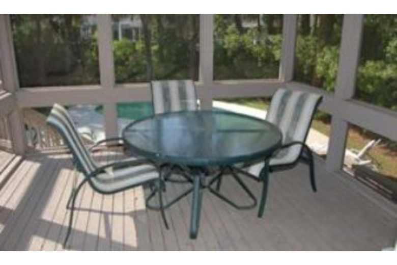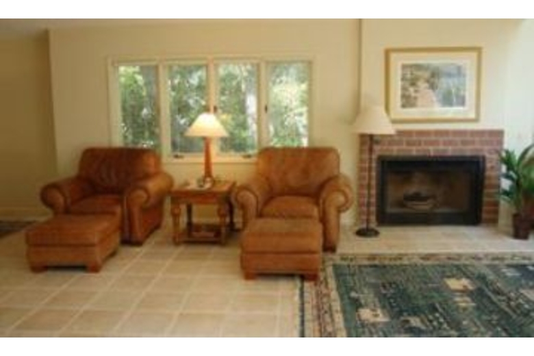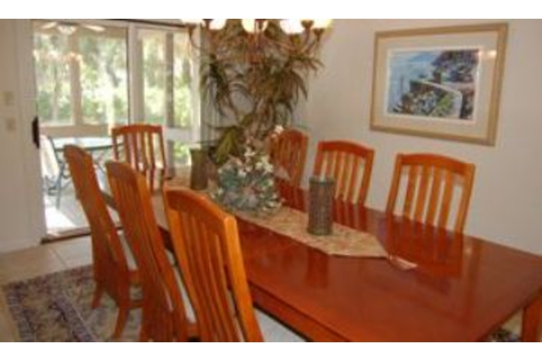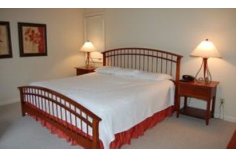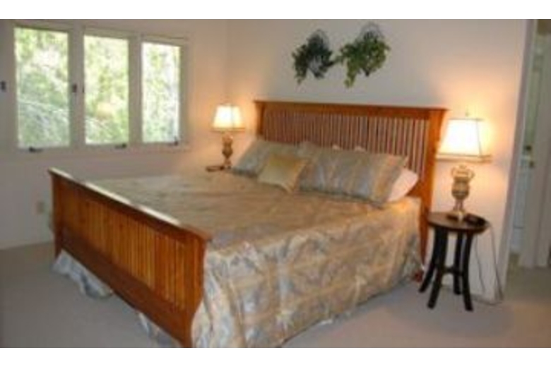 The first floor has a large open living/family room with TV and VCR. There is also a den area with a sleeper sofa. The kitchen is fully equipped and connects to the dining room with full sliders leading to the pool area, screened porch and deck. Five steps up, you will find two bedrooms that share a bath. Each bedroom has two twin beds. Up ten more stairs are two master bedrooms. The first has a king bed, walk-in closet, 25" TV, private bath, and a sliding glass door to a private balcony overlooking the pool. The second master has a king bed, 29" TV, and private bath.Surrounding Description