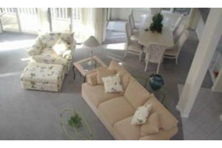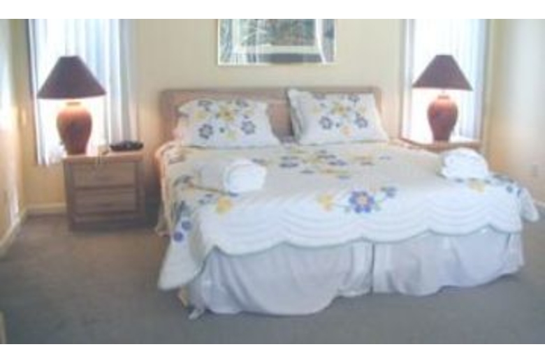 The living area features a wet bar, plenty of seating, TV/DVD, and a great golf course view. Off the living area is a den with a sleeper sofa and TV. The first floor master suite has a king bed, TV/DVD, private bath with separate dressing area, jacuzzi tub and walk-in closet. A second bedroom on the first floor has twin beds and a private bath. Upstairs, the second master bedroom features a king bed, TV, private bath, jacuzzi tub, and separate shower. The fourth bedroom is also on the second floor and has twin beds and a private bath. The large deck off the living area overlooks the pool and golf course.Surrounding Description