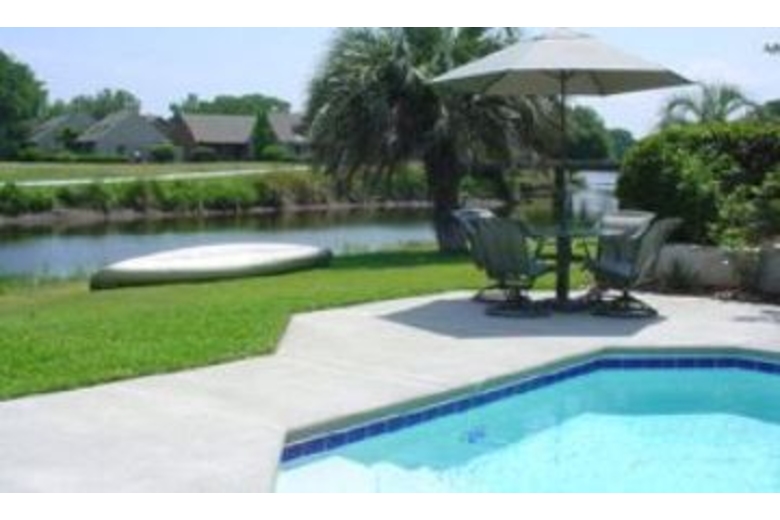 Both master bedrooms, the living room, sun room, breakfast area and recently remodeled kitchen open onto the wrap-around deck and view the lagoon and golf course. In addition, the pool area and wrap-around deck provide a grill and multiple seating areas for outdoor dining, relaxation and nature viewing. A canoe, paddles and life-jackets are available for 8 High Water guests wishing to explore the 11-Mile Lagoon consisting of a series of interconnected waterways looping throughout Palmetto Dunes Plantation. 8 High Water features 5 TV’s, 2 VCR/DVD’s, CD stereo, full-size washer & dryer, fully equipped kitchen, dishwasher and more.Surrounding Description