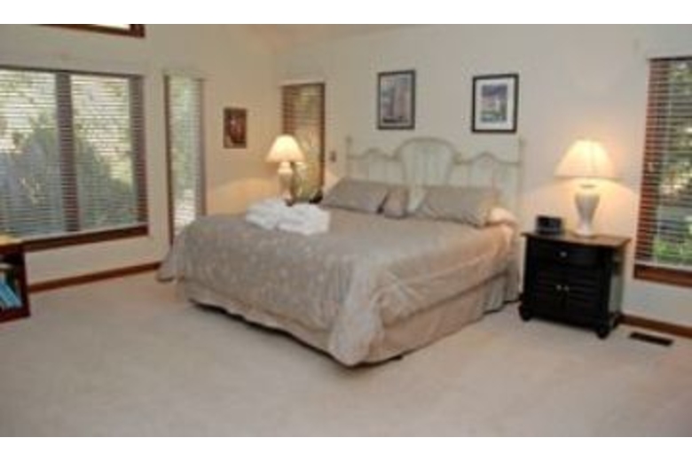 The kitchen has a table for four and a bar with two barstools. The dining room has a table for eight. Also downstairs, is the master bedroom. Equipped with a king bed, flat screen TV, VCR, and DVD player, this room has a private bath with a jetted tub and shower. This room has a door that leads out to the back deck. Eight steps up to the landing is the second bedroom. With its own private bath with a shower, this room has a queen bed and a TV. Seven steps up to the third level, you will find another queen bedroom with a flat screen TV, bathroom with a tub/shower combination, and a door to a private balcony. Also upstairs is a bedroom with two twin beds. This room shares a bathroom with the queen bedroom. The best feature of this near ocean home is the unbelievable pool area. The deck area includes a table for six and a gas grill, making this the perfect place for a meal or to soak up the Hilton Head Island sun!DSL is available for for guests at no additional fee.Surrounding Description