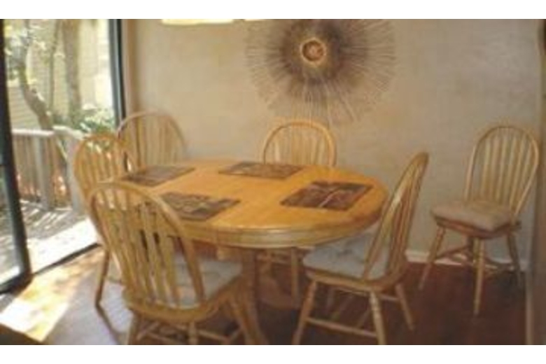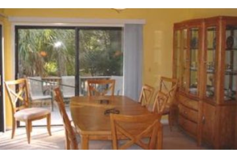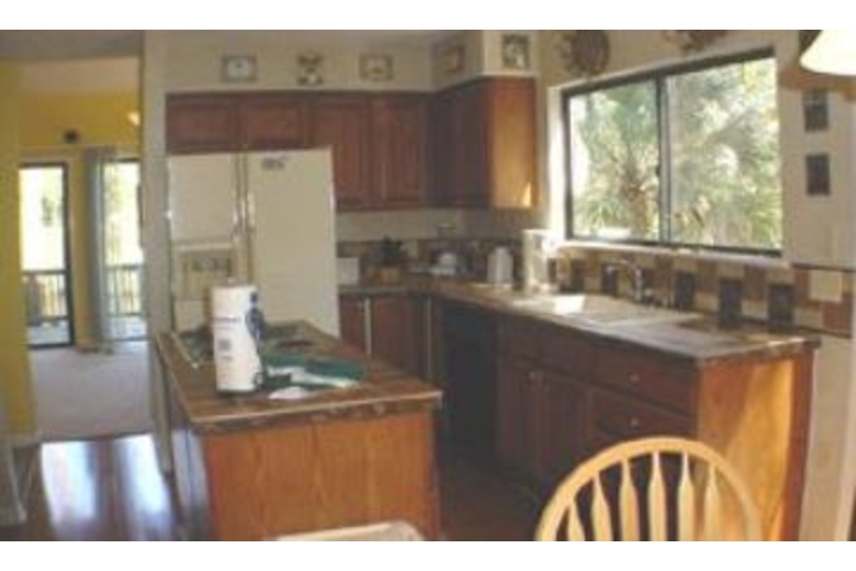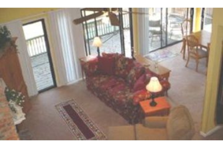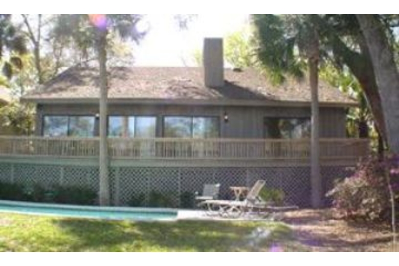 Ten steps lead to the entrance of this lagoon-side residence. Off the entrance is a large living area with high ceilings, a couch, 2 chairs with ottomans, a TV, VCR, DVD, and a stereo with a CD player. Off this room is a large wrap around deck with 2 tables that seat 8 total. This fantastic area overlooks a wonderful pool and lagoon. The kitchen comes fully equipped and has a breakfast table for 6. More formal dining is available off the living area at an elegant table for 6. The master suite has a king bed, walk-in closet, and a private bath with a jetted tub and separate shower. The second and third bedrooms have a king bed and 2 twins, respectively. Up a spiral staircase in the living room you will find the 4th bedroom with 2 twin beds. All four bedrooms come with private baths, TVs, and VCRs. This Hilton Head home is equipped with high speed internet access!Surrounding Description