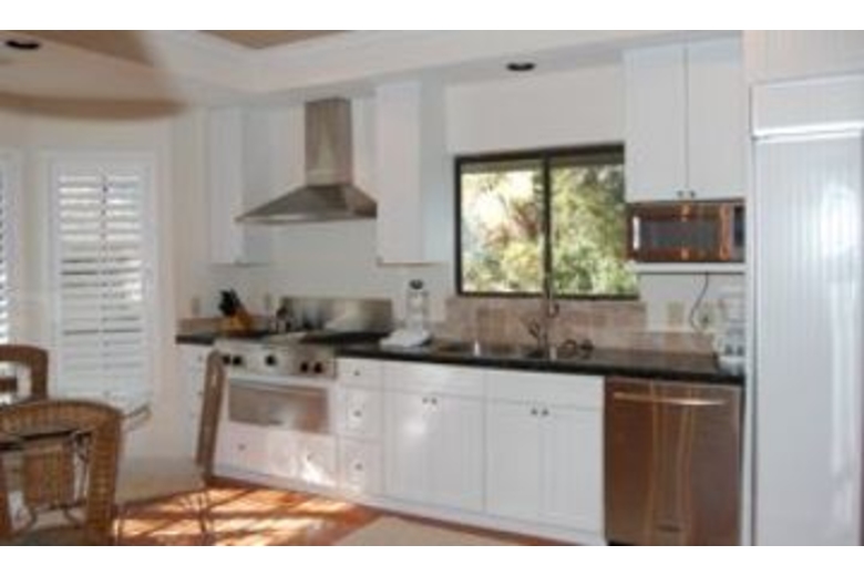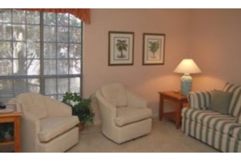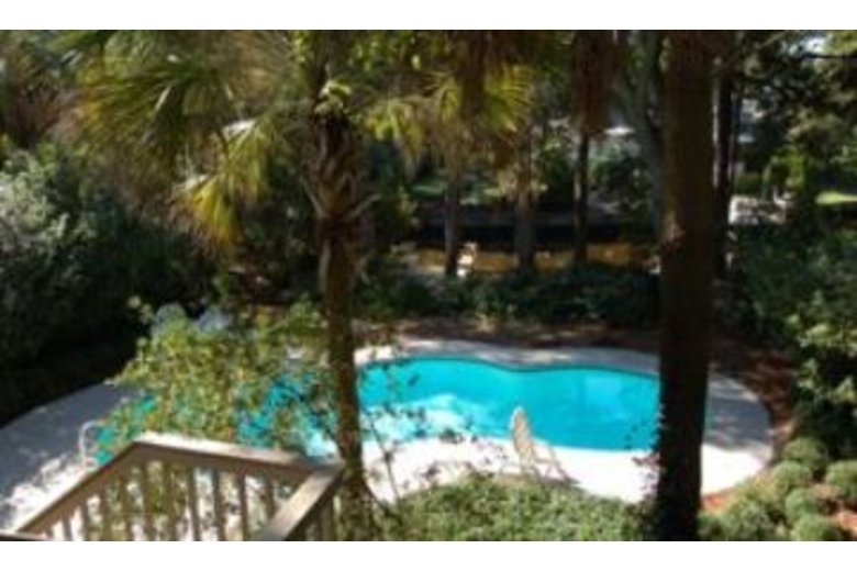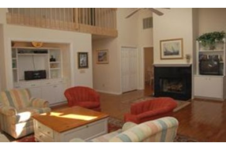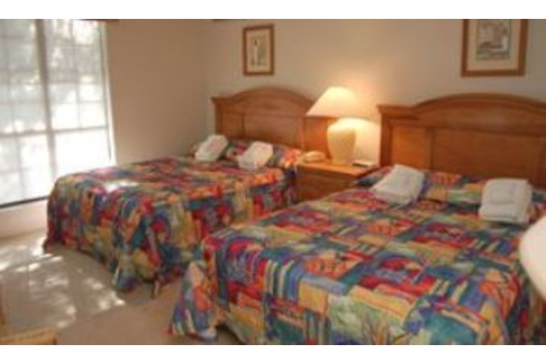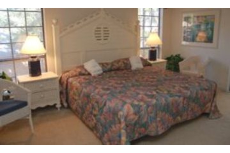 The living room offers an open and airy feel with vaulted ceilings and hardwood floors. There are four chairs, two sofas, decorative fireplace, a stereo with CD player, VCR and DVD. There are also glass doors open to the back with a view of the pool and lagoon. Off the living room is a private den with a sleeper sofa, two chairs, TV, and VCR. The fully equipped kitchen is complete with brand new stainless steel Kitchen Aid appliances. Off the kitchen guests will find a lovely breakfast table with seating for four. Off the kitchen and breakfast area is the dining room which has seating for eight. The first bedroom has two twin beds, stereo, and private bath with tub/shower combination (can also be used as a hall bath). The second bedroom (master bedroom) has a king-swing bed, two chairs, TV and private bath with glass shower and separate jacuzzi tub. Fifteen steps lead to the second floor balcony that overlooks the living room. The third bedroom has two double beds, chair and private bath with tub/shower combination. The fourth bedroom has a king-swing bed, chair, TV and private bath with tub/shower combination. The large back deck overlooks the pool and lagoon and has a table for five and large gas grill. There are sixteen steps down to pool from the deck. The pool gets great sun and has five lounge chairs and four upright chairs. There is even a private dock for fishing!Surrounding Description