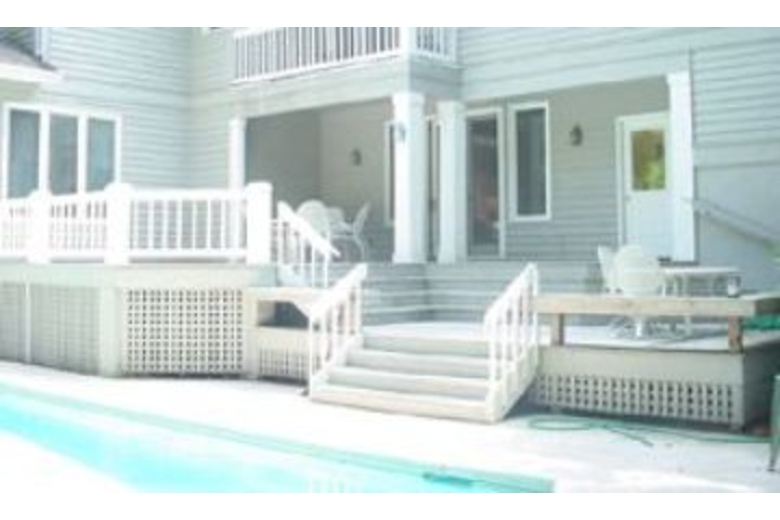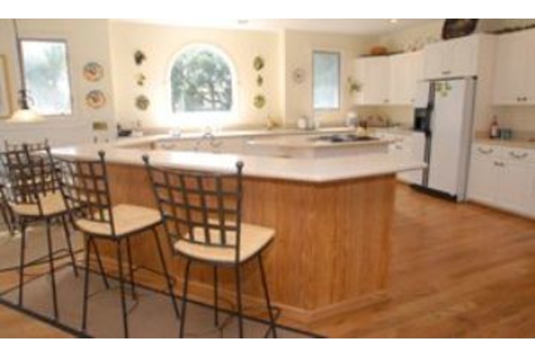 The entrance of the home opens up to a den with a two sofas, TV, VCR, DVD, stereo and double doors leading to the back deck. Three of the bedrooms are located on the first floor. The first bedroom has two twin beds, a TV/VCR combo, and a private bathroom with a tub/shower combo and an ocean view. The second bedroom also has two twin beds, a TV, a private bathroom with a shower, and a door leading to the front porch that faces the ocean. The third bedroom has two full beds, a TV/VCR combo, and a private bathroom with a shower. The laundry room with a full size washer and dryer is also located on the first floor. Eight steps lead to the second floor where the fourth bedroom is located. It consists of two full beds, TV/VCR combo, and private bathroom with a shower and separate garden tub, and an ocean view. The third floor has a fully equipped kitchen. It is located with Corian counters, a breakfast area that seats four, and a bar area that seats three with beautiful ocean views. The dining room has a large table that seat ten with an ocean view. The spacious living room has two large sofas, TV, VCR, DVD, stereo, and a slider door to the balcony. The fifth bedroom is on this floor and features a Queen bed, TV, VCR, slider to front balcony with an ocean view and a private bathroom with a shower and Jacuzzi tub. The Master bedroom is located another eight steps up on the fourth floor. It has a king bed, TV, a private bathroom with a Jacuzzi tub and separate shower, and wonderful ocean views. *Pool and spa may be heated upon request for an additional fee.Surrounding Description