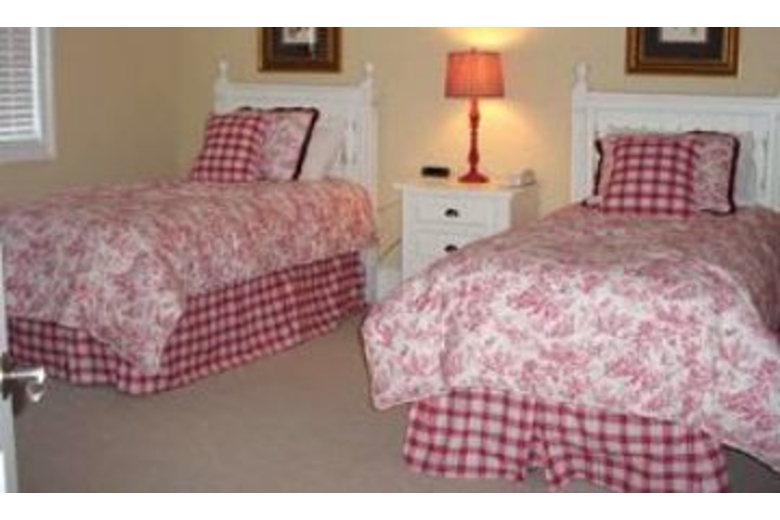 The large downstairs living room features two sofas, a TV, views of the pool and is open to the dining room and kitchen. The upstairs living room features a large flat screen TV, VCR, DVD and two sofas. The dining room has a large table that seats ten and the fully equipped, eat in kitchen has a breakfast table for four and stainless steel appliances. This house features two master suites. One is located downstairs and the other is located on the second level. Both have a king bed, TV, VCR, DVD, private bathroom and sitting area. There are two other bedrooms located on the first floor. One has two twin beds and one has two queen beds. Both rooms have a TV, VCR, DVD and private bath. The last two bedrooms are located on the top floor. One has two twin beds, TV, VCR, and private bathroom. The other has a queen bed, TV, VCR, DVD, private bathroom and a private balcony facing the back of the house. DSL is also included at no additional cost for guests.Surrounding Description