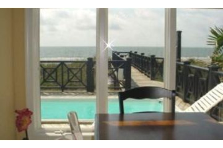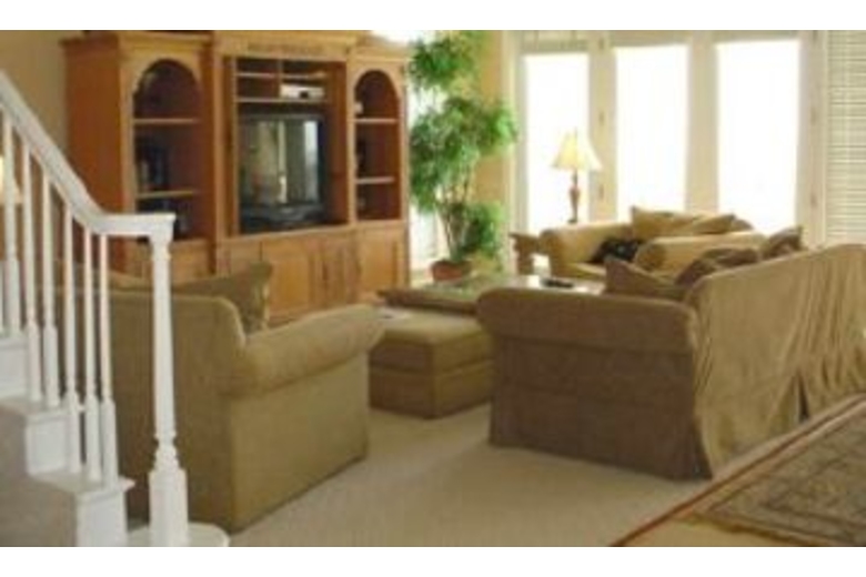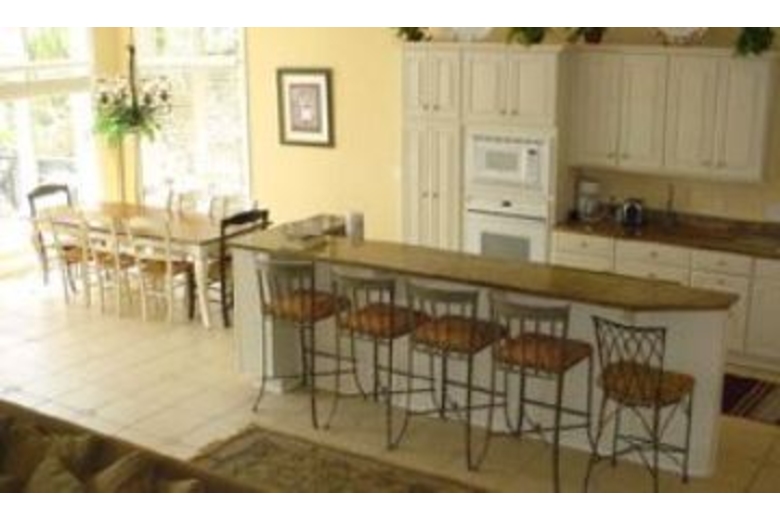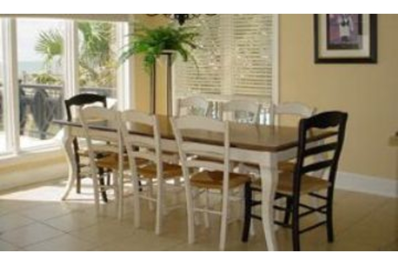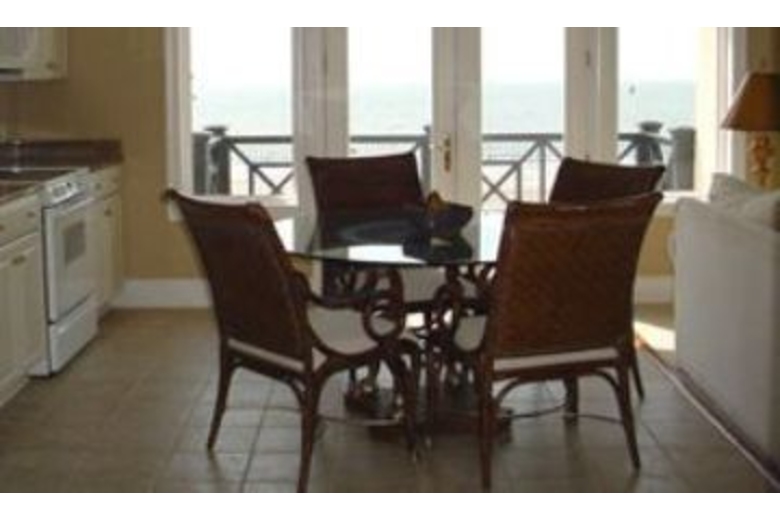 15 steps lead to the entry where you will find a great room with kitchen, dining and living area. A half bath is just off the entry as well as a laundry room with full size washer and dryer. The kitchen has tile flooring, granite counters, an eat-in bar and opens to a dining table for 8. The living area is carpeted and includes a TV/VCR/DVD, stereo and door to the oceanfront pool area with gas grill. The first bedroom, located downstairs, has a king bed, TV/VCR, walk-in closet and private bath with a jetted tub and separate shower. 18 steps lead to the 2nd floor with three more bedrooms. The first is a master suite with king bed, living area with TV/VCR/DVD, door to a private balcony overlooking the ocean, walk-in closet and a private bath with jetted tub and separate shower. The next bedroom has 2 twins, TV/VCR and a private bath with tub/shower combination. Next you will find a bedroom with 2 twins, TV and a private bath. 16 steps lead to the 3rd floor with 2 more bedrooms a large den with a second kitchen. One bedroom has 2 double beds, TV/VCR and a private bath with a shower. The final bedroom has a king, TV/VCR and private bath with tub/shower combination. The beautifully appointed den is one of this homes’ best features. It has a sitting area, TV/VCR/DVD, ½ bath, full kitchen and a private balcony overlooking the ocean.Surrounding Description
