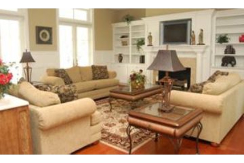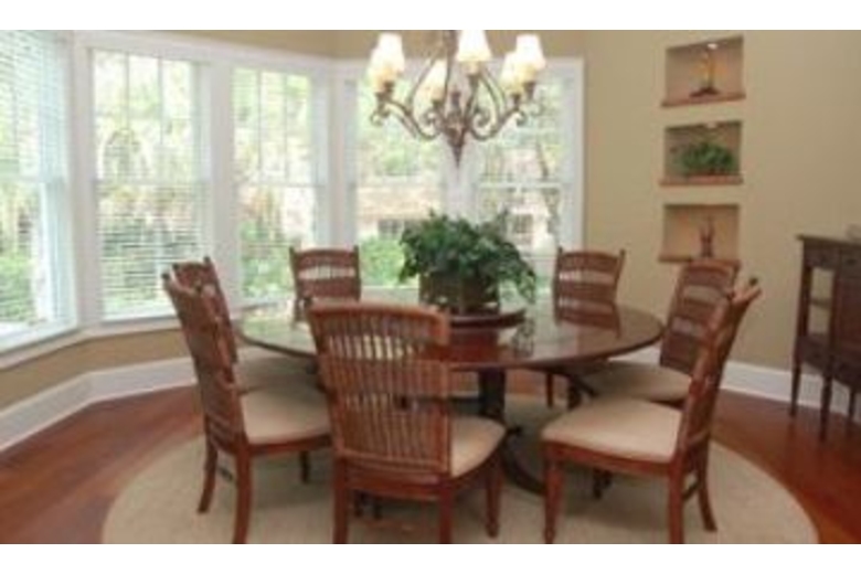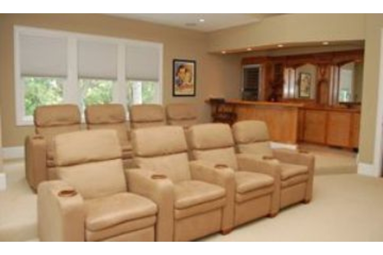 The main living area is downstairs and features beautiful hardwood floors and gorgeous furnishings. The den has a flat screen TV and opens to a kitchen equipped with state-of-the-art appliances, granite counters, and a breakfast bar for 2. The dining area seats 8. One of the best features of this wonderful home is the large media room with projector screen TV, DVD, and stereo, all with surround sound. A half bath and private bar are located at the rear of this room – this is truly a fabulous spot for entertaining. In the master suite, you will find a king bed, LCD TV, and private bath with jetted tub and separate shower. The five remaining bedrooms are located on the second level. Two rooms feature king beds, the other three have queens – all bedrooms offer walk-in closets, LCD TVs, and private baths. Outdoor amenities include a private pool area, 8-person spa, and a great grilling area with refrigerator, sink, and Viking grill.Surrounding Description