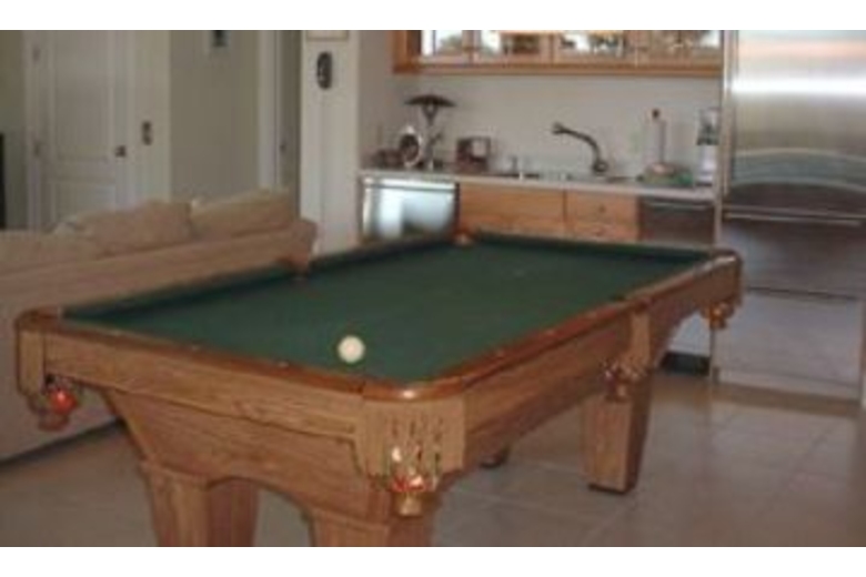 Enter to a game room with a pool table, big screen TV and DVD, kitchenette with refrigerator, dishwasher, and icemaker. Two bedrooms downstairs have king beds, private baths with a shower, TVs, and access to the pool area. The next bedroom has two double beds, TV, walk-in closet, and private bath with tub/shower combination. Also downstairs is a room with two sets of bunk beds (four twins total) and a private bath with shower. Six steps lead to another bedroom with a king bed, TV, and private bath with tub/shower combination. The main level of the home is eleven steps up. The kitchen has hardwood floors, Corian counters, stainless steel appliances, and a bar that seats up to six. The dining room is just off the kitchen and can seat up to eight. A great room on this level has three separate sitting areas. The first has a sofa, loveseat, and two chairs. The second has a sectional sofa, big screen TV, DVD player and CD player. The third has three chairs, decorative fireplace and an ocean view. A slider from this spacious great room leads out to the second floor balcony with sweeping ocean views. The master bedroom is also located on this level and features a king bed, TV, walk-in closet, private bath with jetted tub and separate shower, and access to the living room oceanfront balcony. Eighteen steps lead to the top level with a king bed, walk-in closet, private bath with tub/shower combination, and a sliding glass door to the third level balcony with additional wonderful ocean views. The ocean view pool area is furnished with three lounge chairs, seven chairs, a bench, and an outdoor shower.Surrounding Description