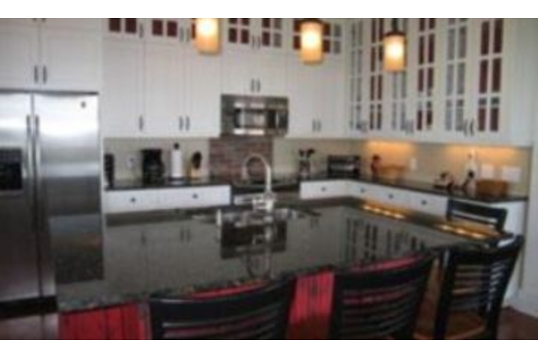 This upscale 4,500 square foot home has a inverted floor plan and offers five bedrooms and five and a half bathrooms, which will accommodate up to twelve guests. Features of this home include Brazilian cherry wood floors, wireless Internet access, and an elevator. The first floor has a large entrance hall, a den with a kitchenette and cable television, and four bedrooms each with a private bathroom. The bedding includes one king bed, one queen bed, and four twin beds. The second floor has a spacious living room with cable television, CD player, and a gas fireplace. The large fully equipped kitchen has granite counters, a wet bar, and two dishwashers making clean-up a cinch! The dining room offers a beautiful ocean view and the dining table will seat up to eight guests. The master suite has tray ceilings and offers a king bed. Come enjoy the large deck and swim in the private heated pool.Surrounding Description