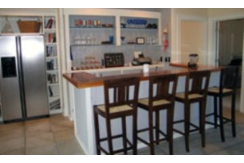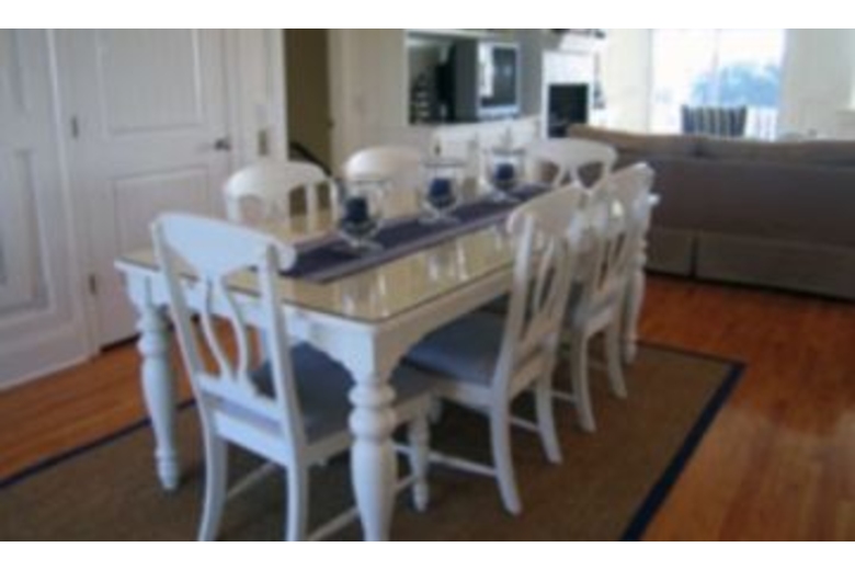 This 3,744 square foot home offers six bedrooms and five and a half baths. The living room is open and airy and offers a television and welcoming gas fireplace. The gourmet kitchen has beautiful stainless steel appliances, a wet bar with seating for four, and a kitchen table that will seat up to eight guests. The formal dining room has a beautiful table that will seat six guests. The bedding, which will accommodate fourteen guests, includes two king beds, two queen beds, four twin beds, and a sleeper sofa. Sit down and read the newspaper in the cozy den. Gather together outside with friends or family on the furnished screened-in porch or deck. Take a swim in the private pool with an outdoor kitchen and dining area. Guests also enjoy wireless Internet, whirlpool tubs, and an elevator.Surrounding Description