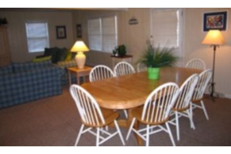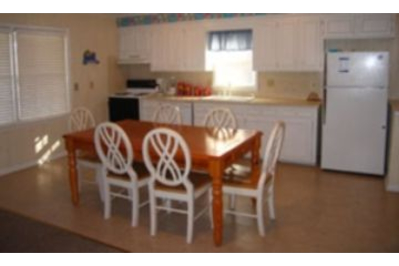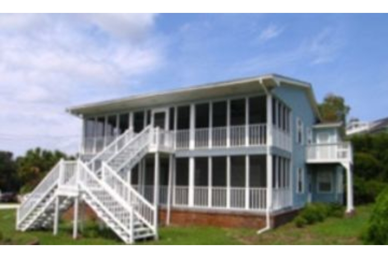 This home features large screened porches for enjoying the surroundings any time of the day, or night. It has 2 kitchens, and 2 living rooms. The first floor bedroom has a queen size bed with a private bath. The second bedroom has 2 double beds, and has access to the hall bath. The master bedroom on the second floor has a king bed, private bath , and leads out to a small deck. Another bedroom on that floor has 2 queen beds, and access to the hallway bathroom. The living room is open to the kitchen, and dining area, and the kitchen has a large dining table.Surrounding Description