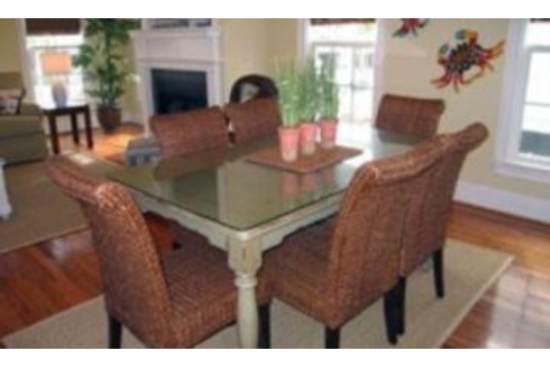 This home offers six bedrooms, four and a half baths plus five TVs and DVD players. The first floor has a dining area with a table and six chairs. There is a living area with a fireplace and lots of windows. The fully equipped kitchen has lots of counter space, a dishwasher, ice maker and microwave. There are two bedrooms on this floor; both come with a queen bed. There are four other bedrooms that are on the second floor. The first bedroom comes with a king bed, whirlpool tub and partial ocean views. In the second bedroom there is a queen bed. The third and fourth bedrooms also come with a queen bed.Surrounding Description