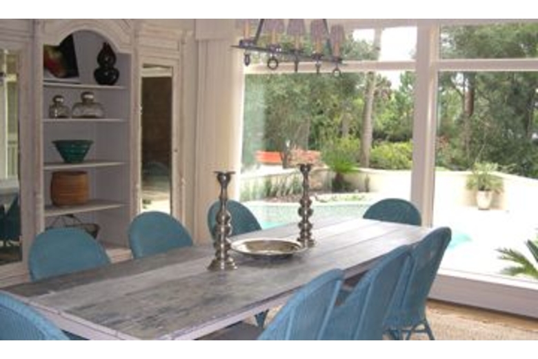 This luxurious six-bedroom home with five full baths and two half-baths truly has it all. Decorated throughout by one of Charleston’s most notable designers, this home exhibits an elegant appearance that combines contemporary style with a charming and playful personality. Expansive windows on all three levels admit sweeping views of the Atlantic Ocean and acres of serene marshlands. Multiple sun decks provide spectacular vantage points for observing the natural rhythms of island life and relaxing in Kiawah’s tranquil surroundings. Plasma televisions throughout. An indoor sauna is complemented by a lagoon-style swimming pool with an adjoining spa tub. The guest house has two bedrooms that share a bath.Surrounding Description