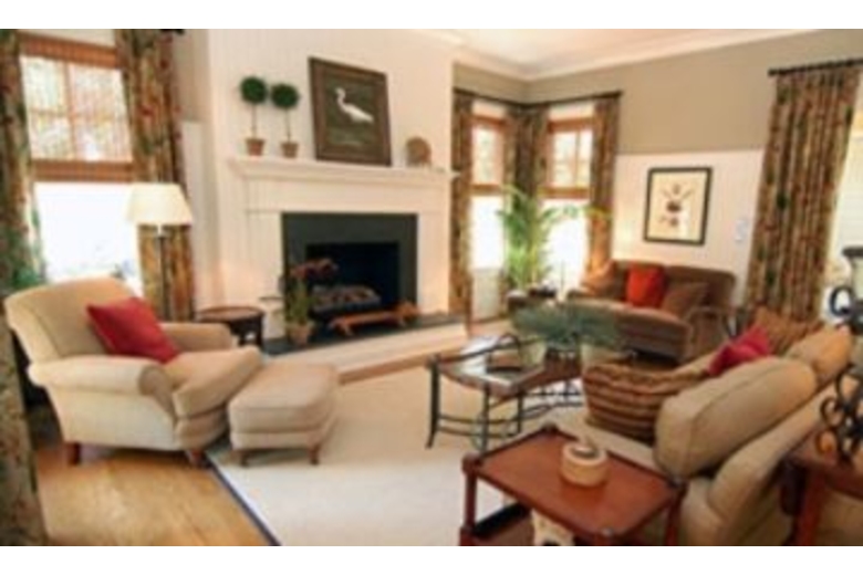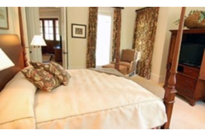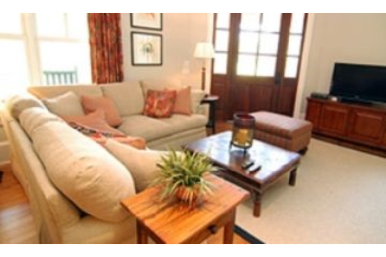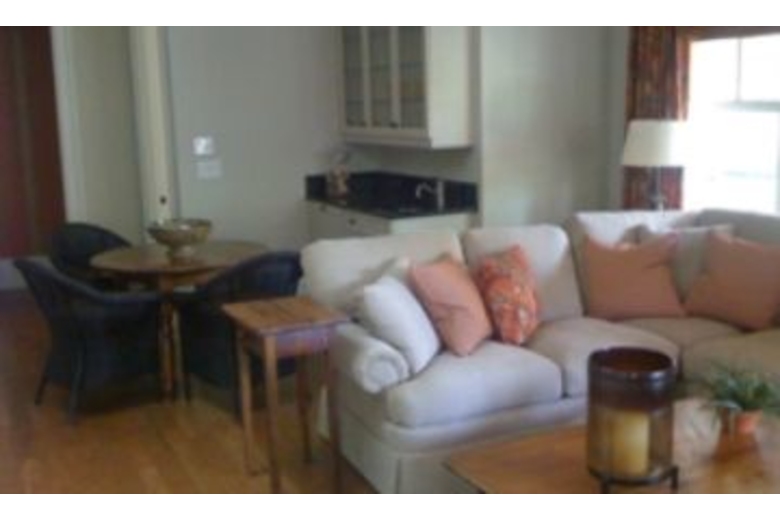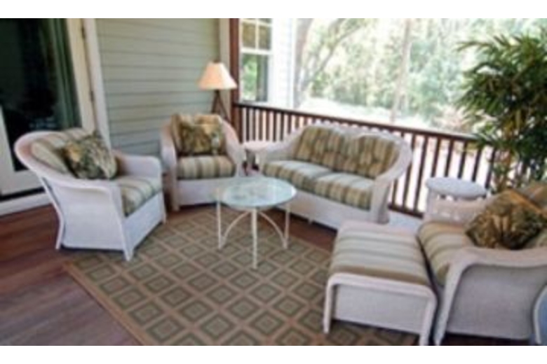 The formal living room is a great place to relax with a book or gather for conversation. It has access to the front deck and the screened porch. The adjacent formal dining room will seat 8 guests comfortably and has deck access as well. The gourmet eat-in kitchen features stainless steel appliances, and a kitchen island/breakfast bar with seating for 2 guests. In addition, the sunny breakfast nook has seating for 4. Off the kitchen is a butler's pantry, and a wet bar. The Master suite is furnished with a king bed, and has its own TV. The private bath has both a bathtub and separate shower, and a dressing room. The Master suite has direct access to the front porch. Outside, the furnished screened porch and deck are wonderful places to enjoy the outdoors. A built-in barbeque grill makes outdoor dining much easier. One the second floor enjoy, a roomy den featuring a flat screen TV, DVD player and VCR, multiple sitting areas, and full service wet bar with cool storage drawers.Surrounding Description