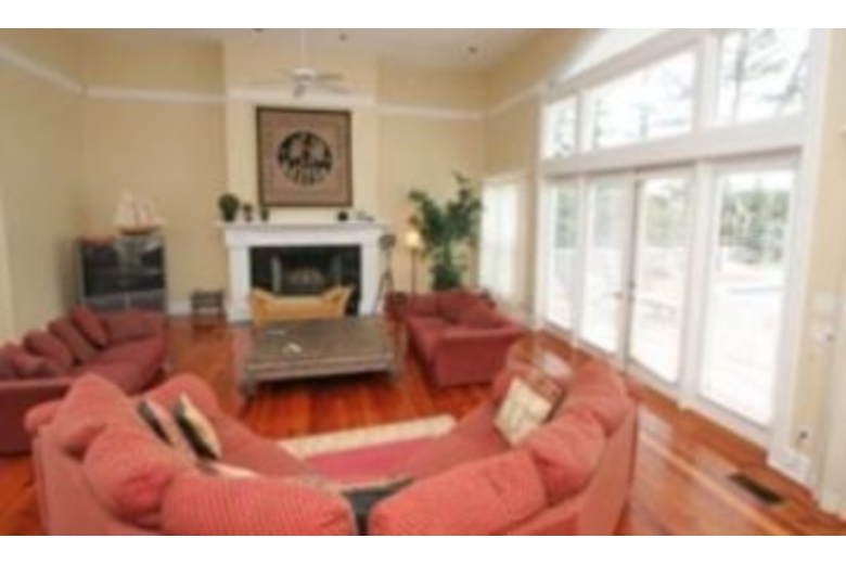 This five bedroom, four and a half bath home sleeps up to twelve people with a king bed, queen bed, two double beds, two twin beds, a daybed, and a trundle. The master bedroom has its own fireplace, private deck, and bath. The kitchen is fully equipped and offers seating for three at the breakfast bar and eight at the breakfast table. There is also a formal dining area with seating available for eight. In the living area you will find floor-to-ceiling windows offering a view of Ibis Pond and a fireplace.Surrounding Description