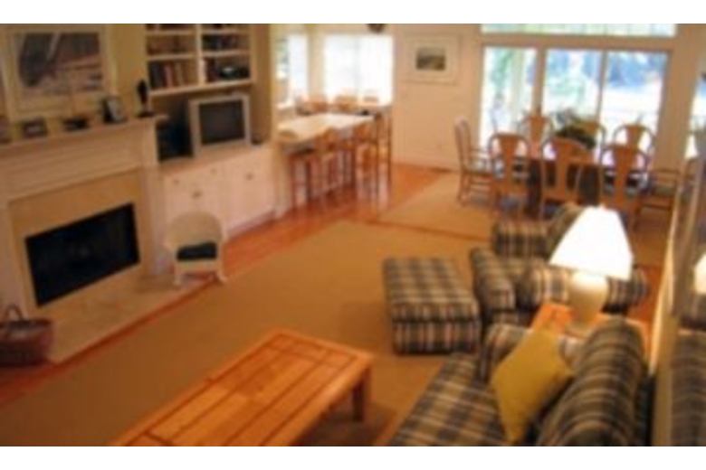 This five bedroom, five bath house features a gas grill, hardwood floors, and high speed wireless internet. The living area has a fireplace, cable TV, and comfortable furnishings. The dining area offers seating for eight at the table and three at the breakfast bar. Whip up your favorite meals or a quick snack in the fully equipped kitchen or head out to one of the local restaurants for a great meal. Three bedrooms are located on the first floor, two with a king bed and one with two twin beds. The upstairs bedrooms have a king bed in one and two twin beds in the other. This home has approximately 2300 square feet and sleeps up to twelve people.Surrounding Description