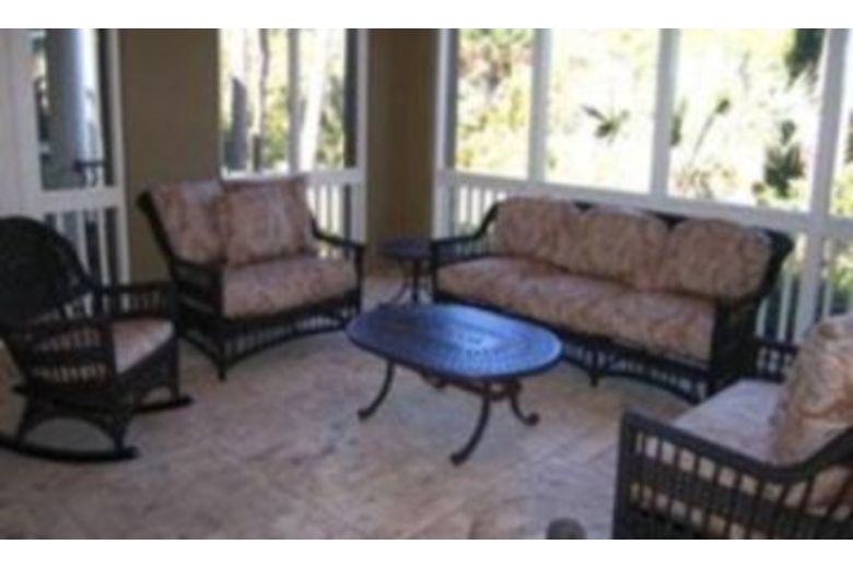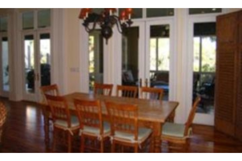 This four bedroom, five and a half bath house accommodates up to ten people comfortably. Bedding includes two king beds, one queen bed, two twin beds, and a queen sleeper sofa in the den. The kitchen is fully equipped with everything you need for meals and on the second floor you will find a kitchenette. This home also has a fireplace, screened porch, TV, gas grill, and 4000 square feet.Surrounding Description