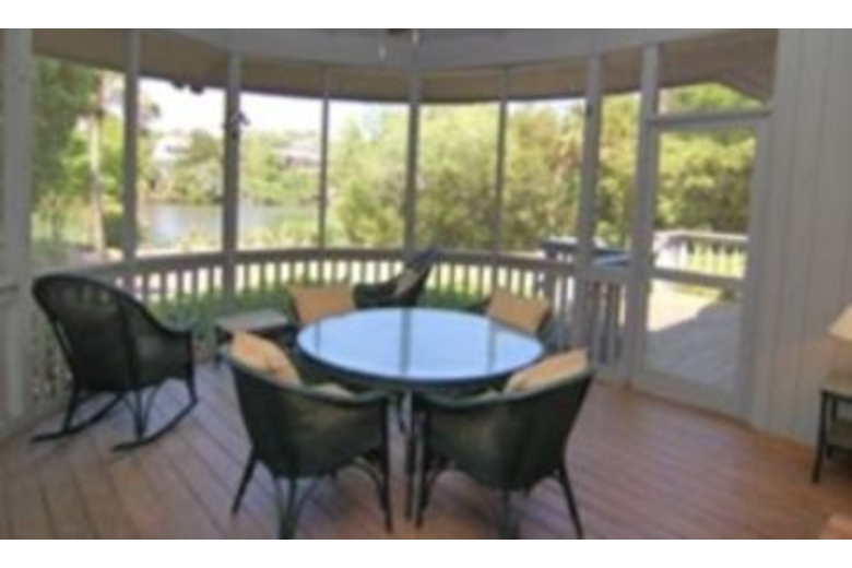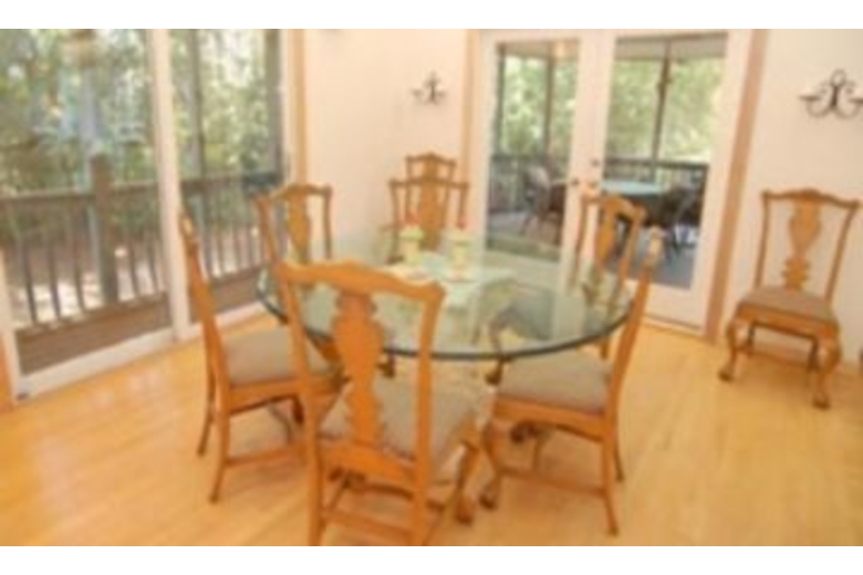 The living room of this home has hard wood flooring,and opens to the furnished deck with gas grill. The open floor plan flows between the living area, and the dining area, and kitchen, making it easy to spend time together. There is king size bed in the master bedroom, with a queen, and 6 twins in the remaining bedrooms. You can also enjoy watching movies on the flat screen TV and DVD player, or just enjoy the whirlpool tub.Surrounding Description