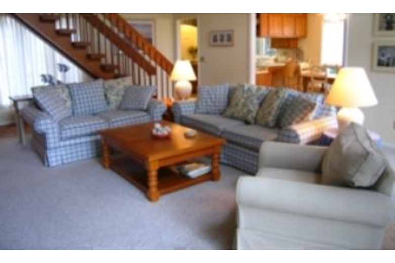 This large home has all the amenities you will need to provide you the perfect vacation get away. It features four bedrooms and four bathrooms and provides sleeping accommodations for up to ten people. Two of the bedrooms on the first floor both have queen size beds and a private bath and the third bedroom has two twins and also has a private bath. On the second floor the bedroom/loft area has four twin beds and a sitting area with a television and a VCR. This loft area also has a bathroom with a shower only. Additionally, this home has a fully equipped kitchen, an outdoor shower.Surrounding Description