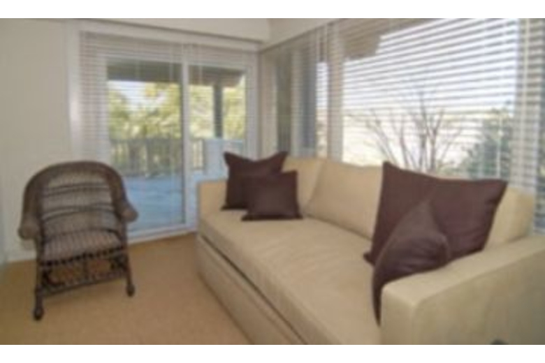 On the first floor is a den with sleeper sofa and desk area that opens onto the deck. Two bedrooms are also on the first floor. A queen bedroom with private bath features deck access, while a bedroom with two twins also has a private bath. The master suite with king bed and whirlpool tub is on the second floor.The living area on the second floor features vaulted ceilings, flat screen TV with DVD and opens on the scenic view deck. The kitchen is fully equipped and features hardwood floors and seating for two at a breakfast nook.Surrounding Description