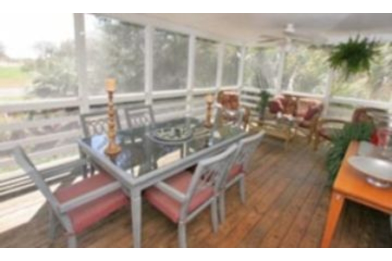 This cozy home has a family room that opens to the deck which features a wet bar, TV DVD/VCR combo as well as a stereo system. Off the family room you will find a bedroom and private bath as well as another half bath off the foyer. Enjoy the stainless steel appliances in the kitchen and the lovely inlaid floor with compass motif. The master bedroom features 1 king bed and a cozy seating room. Unwind off the second floor deck while you watch the sunset.Surrounding Description