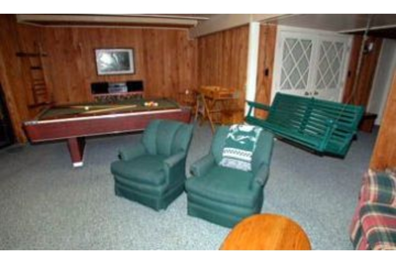 Chalet offers one 3 king bed, 2 queen beds, 2 double beds, four twin beds, 4 TVs, 1 DVD/VCR combo.,2 VCRs, 2 stereos with CD,1 component stereo, six person hot tub on a screened porch, one wood burning fireplace & 1 double sided gas fireplace,pool table, one screened in porch four decks,a unique loft sunroom, washer and dryer and parking for about six cars.