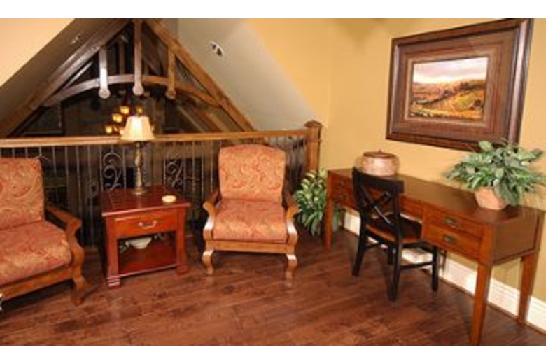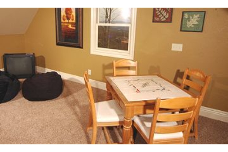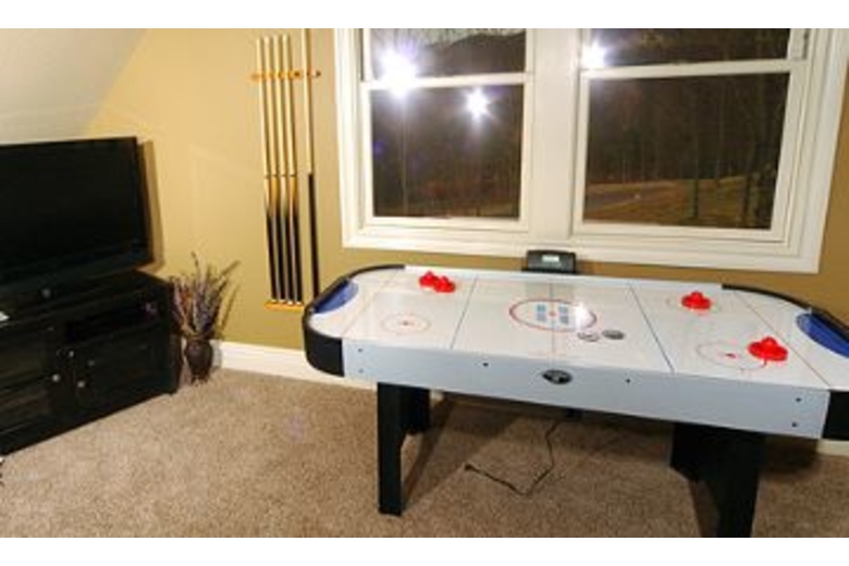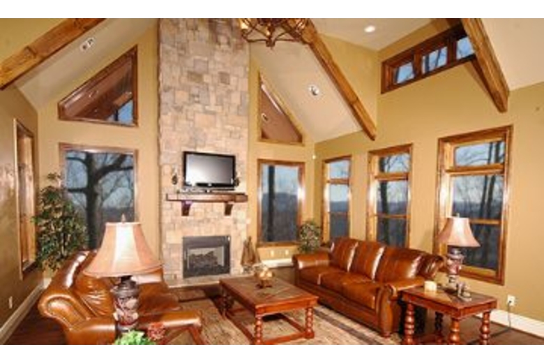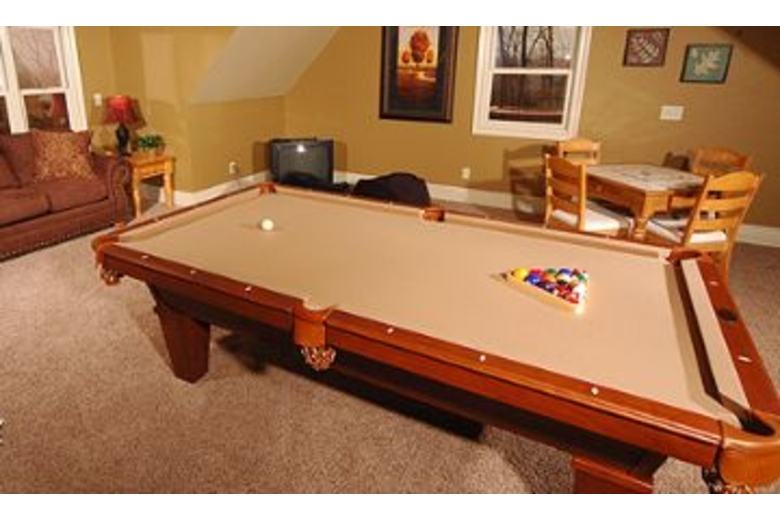 As you enter this cabin you will be immediately impressed by the elegance of the upscale furnishings. The Great room offers a sitting area with plush leather sofas, a beautiful stacked stone gas fireplace and a 42” Flat Screen TV. You can prepare your favorite meal while you can catch your favorite sitcom on the TV in the kitchen. For those who love to cook a big 6 burner gas stove is provided. If you are too tired to carry your suitcases upstairs; just set them in the Elevator and take them on up to the second floor! Down the hallway you will enter the first bedroom that offers a luxurious King size bed, 26” Flat Screen TV with DVD, and attached Full Bath. The second bedroom is the first Master Suite that offers a spacious King size bed, 26” Flat Screen TV with DVD. There is an attached full bath. The Game Room provides entertainment for one and all. Play a game of Pool, or perhaps a family challenge at the Air Hockey table is in order. For a real evening of fun, why not step into the Media Room and watch your movie on the 84” projection Screen and HDTV that offers a DVD and a full line-up of Cable TV programs.Surrounding Description