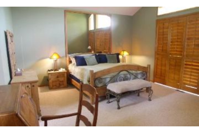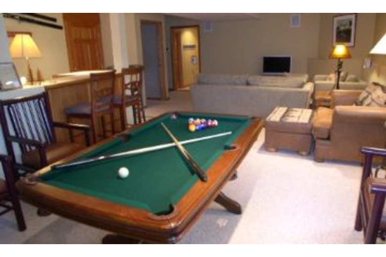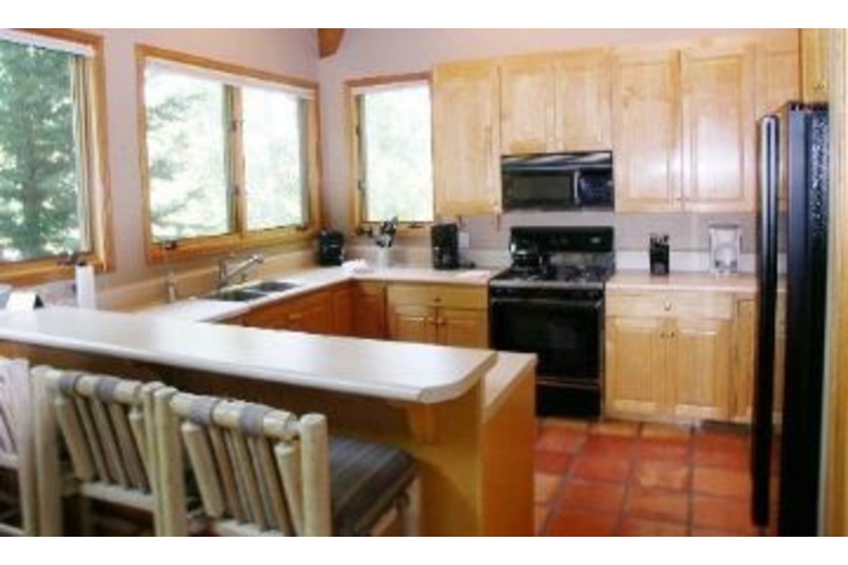 This home comes with four bedrooms, three and a half baths plus an open floor plan and vaulted ceilings. The first bedroom has a wood-burning fireplace, king bed and TV. The second bedroom has a queen bed and TV. In the third bedroom there is another queen bed and TV. The fourth bedroom has a bunk bed (twin on top, queen on bottom with a twin trundle). There is a fully equipped kitchen that has a dishwasher, microwave, coffee maker and ice maker. The living area has a gas fireplace and TV. The dining area comes with a table and seating for ten people. In the family room is a wet bar and TV.Surrounding Description