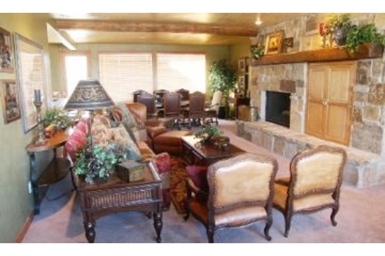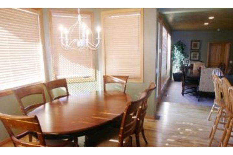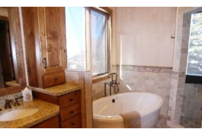 With 6,700 square feet this seven bedroom, five bath home can easily sleep your group of twenty with dining for twenty-two. Enjoy the outdoor hot tub, plasma TV, three gas fireplace, wet bar and wrap-around deck with barbecue grill. in the first master suite you'll find a king bed, adjoining bathroom w/jetted tub, separate steam shower, double vanity with granite counter top, walk-in closet, flat screen TV plus a two-way gas fireplace between bedroom and bathroom all located on the main level. The second master suite also has a king bed, adjoining bathroom w/jetted tub, separate shower, double vanity with granite counter top, walk-in closet plus TV/DVD on the lower level. Remaining beds include five queens and two bunk beds with twins over queens. There's also garage parking for two cars, central humidifications and air conditioning plus wireless internet.Surrounding Description