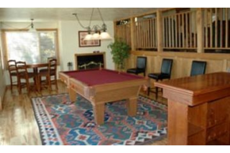 There is plenty of room for everyone in this four bedroom, three and a half bath home. Enjoy the game room, wet bar and pool table that is located on one of the levels. The first bedroom has a double futon, king bed, TV and wood-burning fireplace. The second bedroom has a wood-burning fireplace, TV plus a queen bed and twin bed. In the third bedroom there is a queen plus a wood-burning fireplace, TV and bunk bed (two twin beds). The fourth bedroom comes with a queen bed. The living area has a single sofa sleeper, TV and wood-burning fireplace. The fully equipped kitchen has an ice maker, an island with extra seating, a dishwasher, microwave and coffee maker. There is a table and four chairs in the game room plus a wood-burning fireplace. There is another dining area located by the kitchen.Surrounding Description